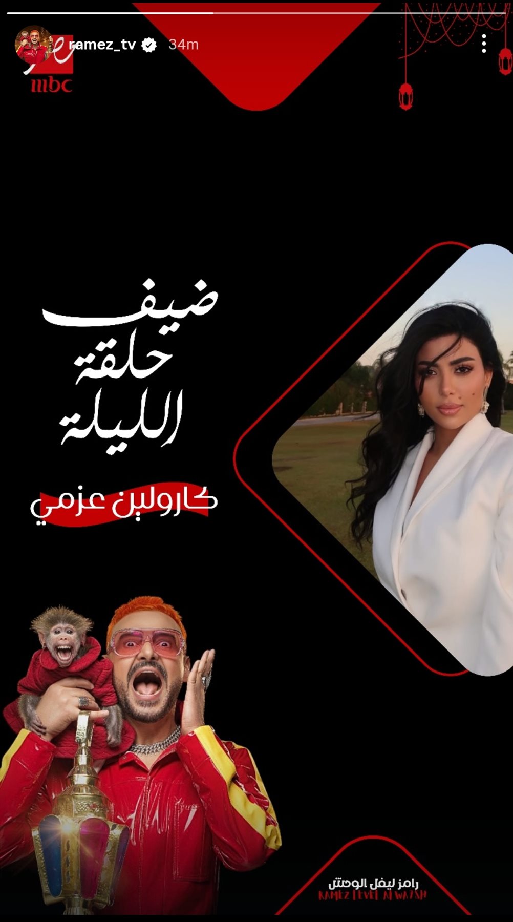 تقع الفنانة كارولين عزمي ضحية النجم رامز جلال في برنامج «رامز ليفل الوحش»، في حلقة اليوم، السبت، الموافق 14 مارس حصريًا على شاشة قناة Mbc مصر، وذلك بعد أنباء إصابتها بالبرنامج حيث خضعت لجلسات علاج طبيعي بعد إصابتها بكدمات.