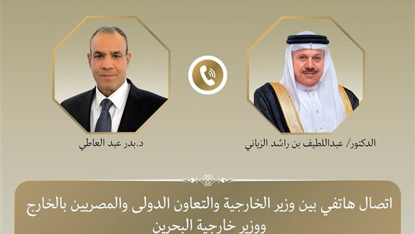 جرى اتصال هاتفي بين د. بدر عبد العاطي وزير الخارجية والتعاون الدولي والمصريين بالخارج، والدكتور عبد اللطيف بن راشد الزياني وزير خارجية مملكة البحرين الشقيقة، مساء يوم السبت 14 مارس الجاري، لتبادل الرؤى إزاء التهديدات الخطيرة التي تواجه المنطقة وأمن الخليج العربي.