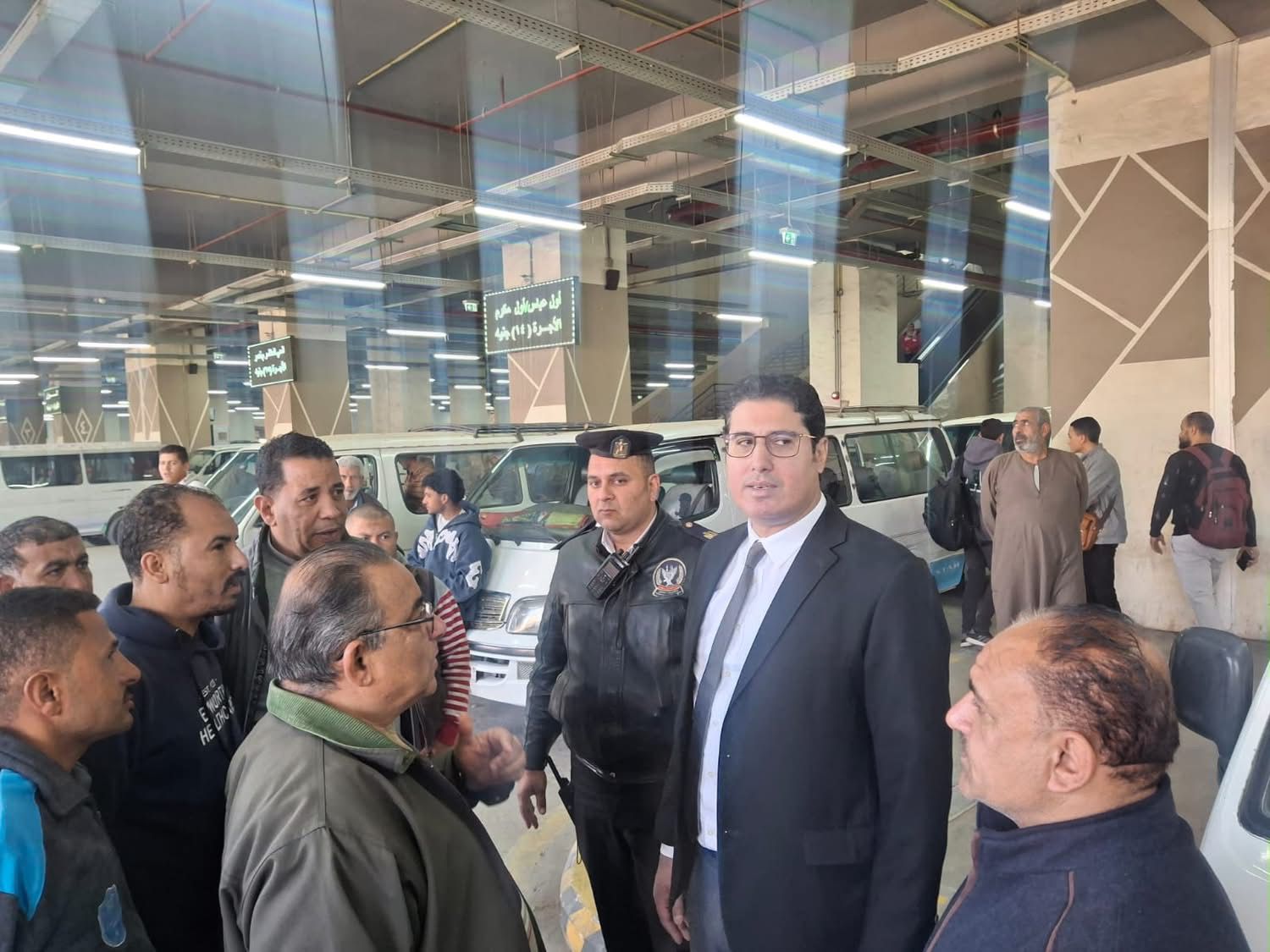 زيارة مفاجئة للدكتور أحمد العدل بموقف السبتية الجديد للتأكد من التزام سائقي «السرفيس» بالتعريفة الجديدة
