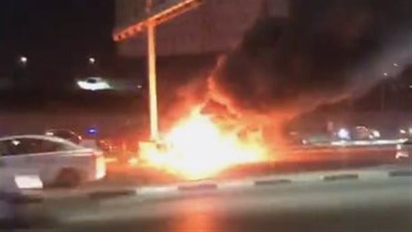 اشتعال سيارة ملاكي بطريق السويس تثير حالة رعب بين المارة والسائقين