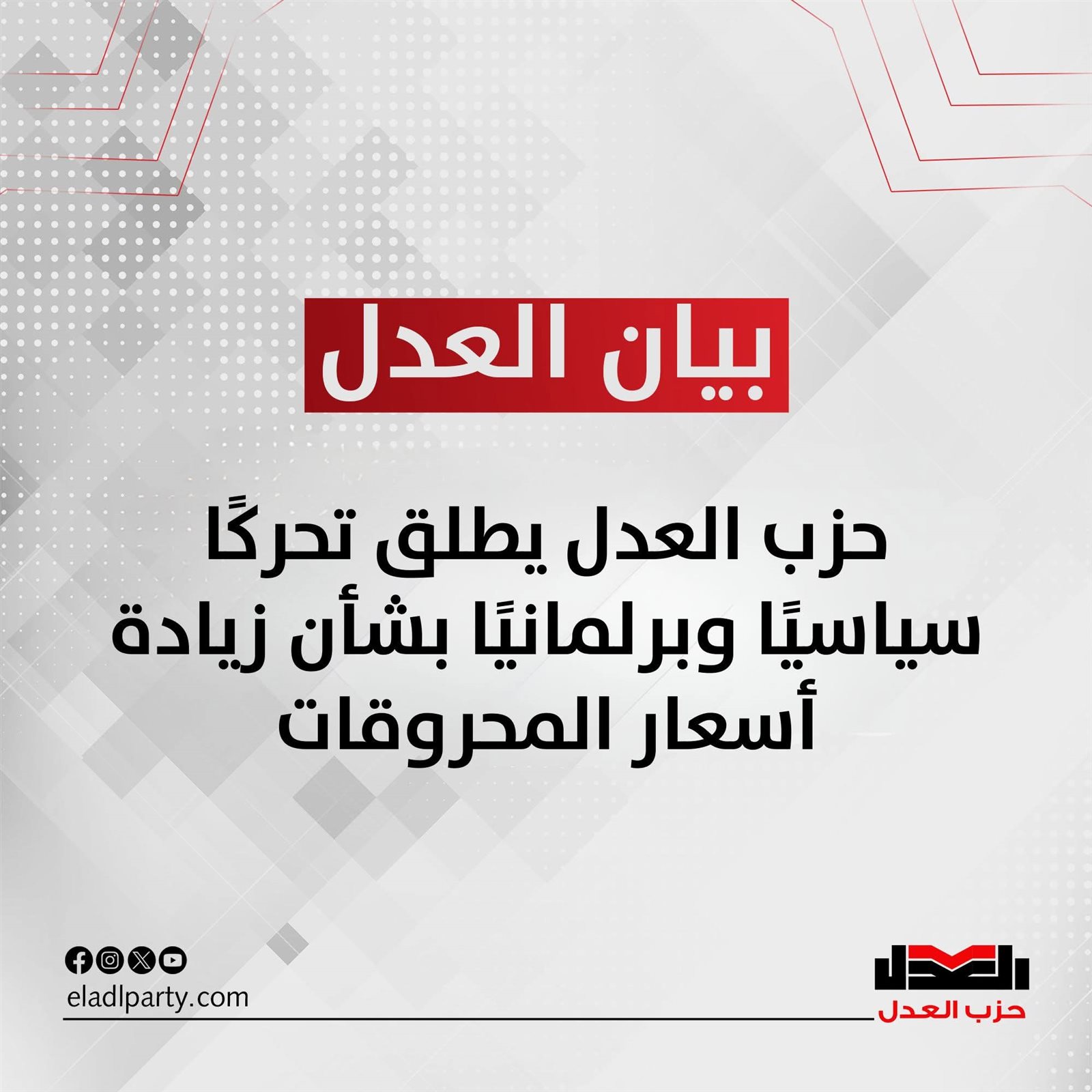 وأكد حزب العدل أن إدارة أزمة الطاقة لا يجب أن تعتمد على الحل الأسهل سياسيًا والأثقل اجتماعيًا، وهو تحميل المواطن تكلفة الأزمة، مشيرًا إلى أن هناك بدائل اقتصادية أكثر توازنًا كان يمكن اللجوء إليها قبل رفع أسعار الوقود.