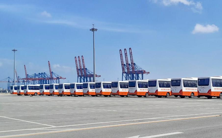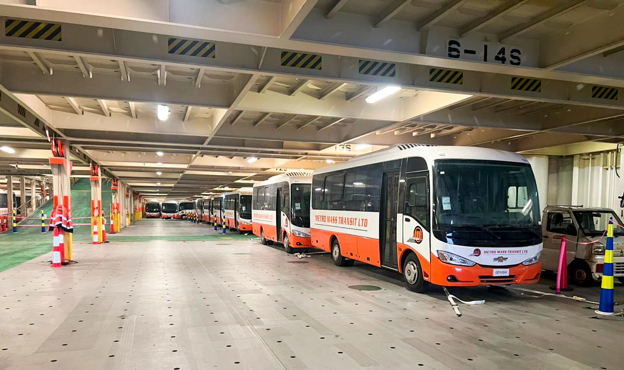 رصيف ميناء شرق بورسعيد يشحن 100 حافلة مُصنّعة محليًا على متن السفينة SUNSHINE ACE