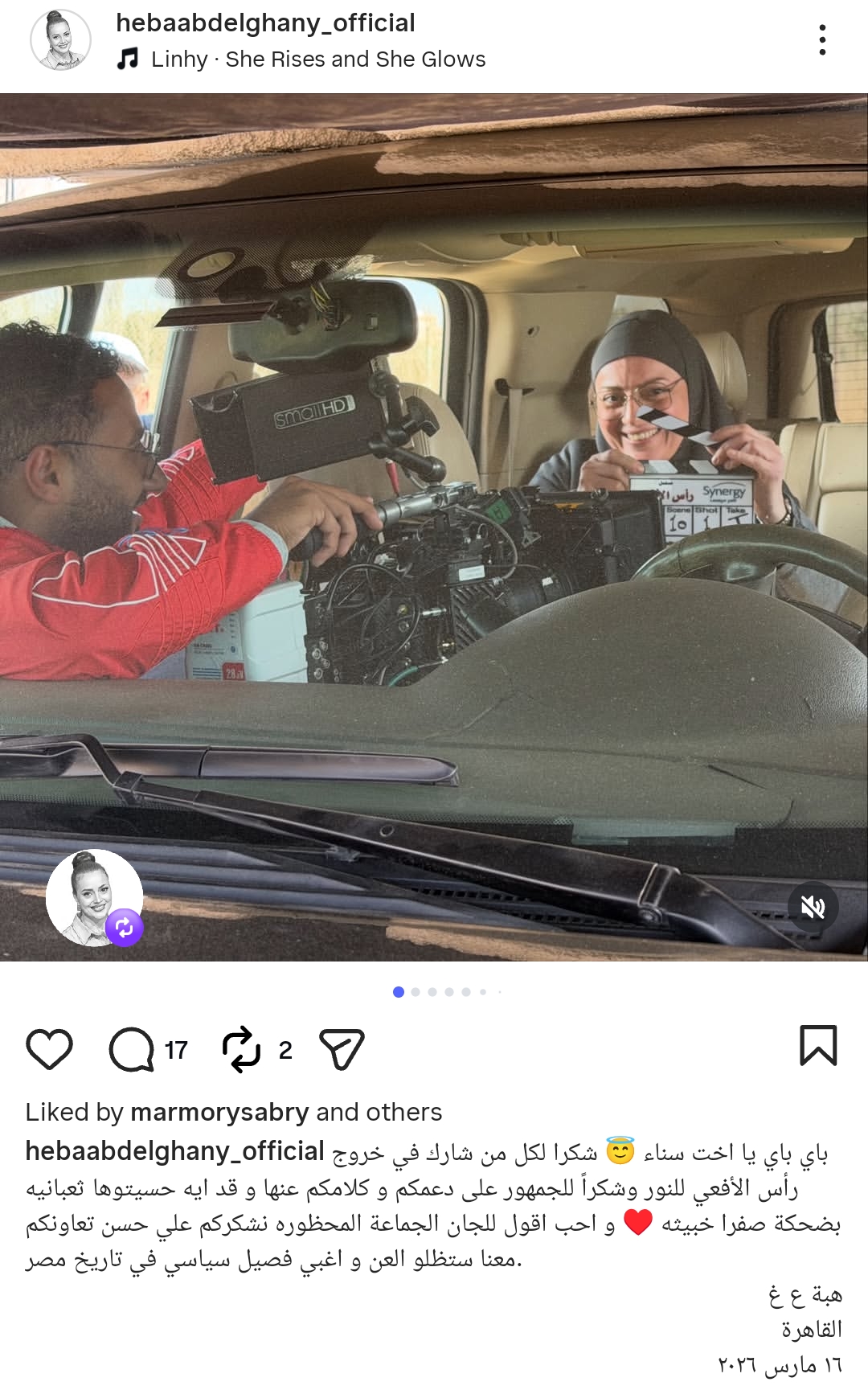 وكتبت هبة عبدالغني من خلال حسابها الرسمي عبر موقع تبادل الصور والفيديوهات القصيرة إنستجرام، قالت: باي باي يا أخت سناء، شكرا لكل من شارك في خروج رأس الأفعي للنور وشكراً للجمهور على دعمكم و كلامكم عنها و قد ايه حسيتوها ثعبانية بضحكة صفرا خبيثة، و احب اقول للجان الجماعة المحظوره نشكركم علي حسن تعاونكم معنا ستظلو ألعن وأغبي فصيل سياسي في تاريخ مصر.