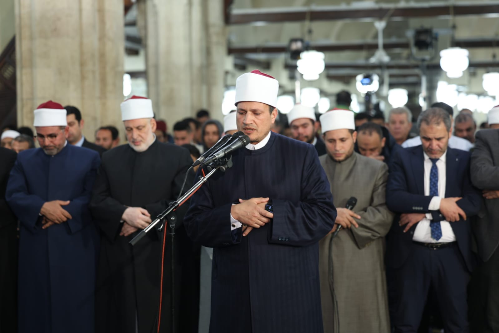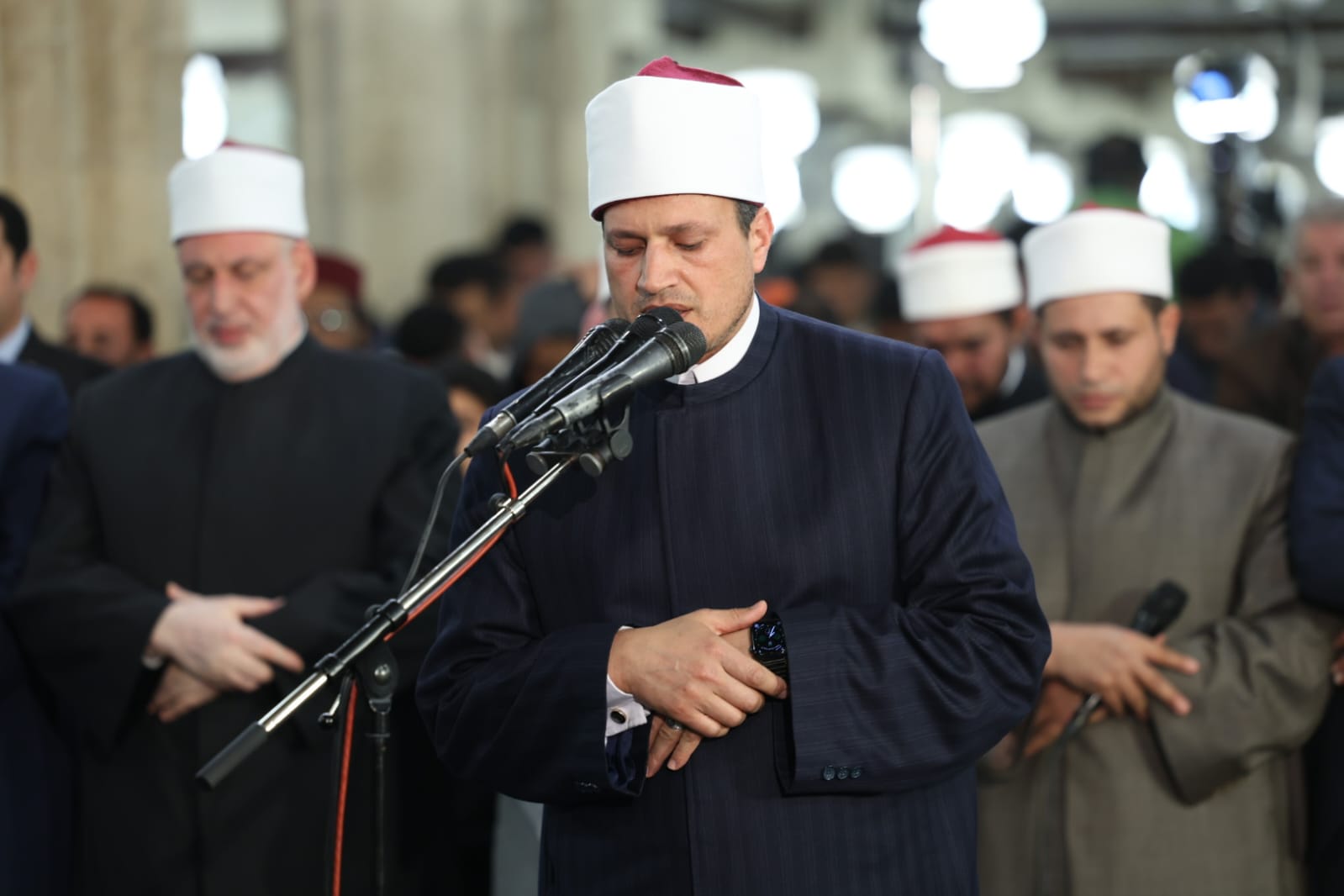 أئمة قبلة الجامع الأزهر يؤدون صلاة التراويح في الليلة الثامنة والعشرين من رمضان