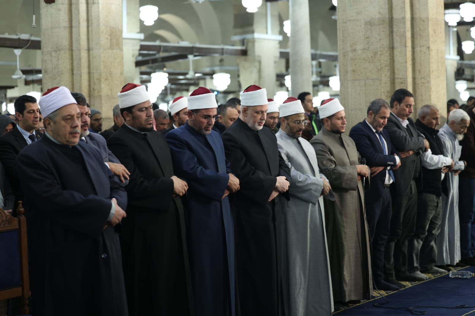 وتقدَّم صفوف المصلين فضيلة أ.د/ محمد الضويني، وكيل الأزهر، والشيخ أيمن عبدالغني، رئيس قطاع المعاهد الأزهرية، والدكتور هاني عودة، مدير الجامع الأزهر، والدكتور محمود الهواري، الأمين المساعد لمجمع البحوث الإسلامية، والشيخ حسن عبدالنبي، وكيل لجنة مراجعة المصحف، إلى جانب لفيف من علماء الأزهر الشريف وقياداته، حيث شاركوا جموع المصلين الدعاء والتضرع إلى الله تعالى أن يتقبل صالح الأعمال، وأن يعمَّ الخير والبركة على مصر والأمة الإسلامية.