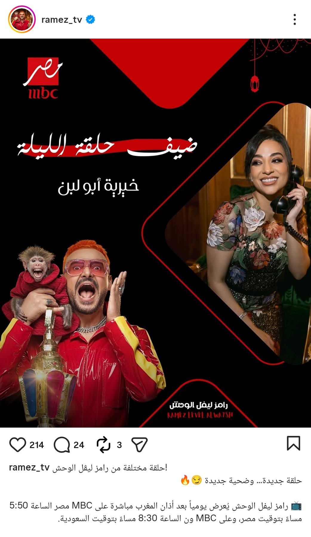 ويواصل برنامج رامز جلال الجديد رمضان 2026 تحقيقه جماهيرية كبيرة، والتي اعتاد عليها طوال السنوات الماضية، حيث اعتاد الجمهور المصري والعربي وفي كافة أنحاء العالم على انتظار برنامج رامز جلال يوميًا طوال شهر رمضان الكريم على الفطار، حيث يُعرض على شبكة قنوات إم بي سي أبرزها شاشة قناة إم بي سي مصر، ومنصة شاهد الرقمية.