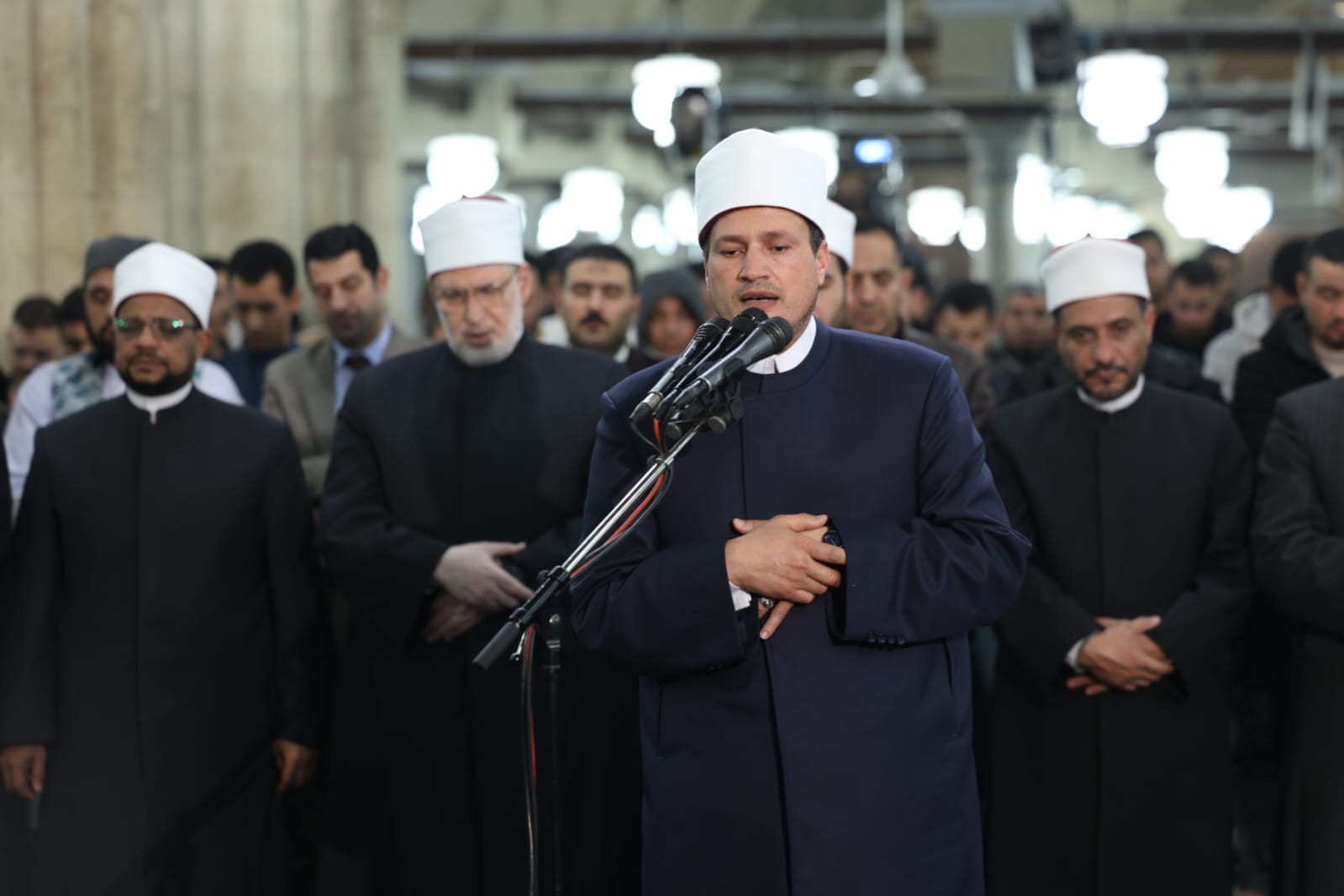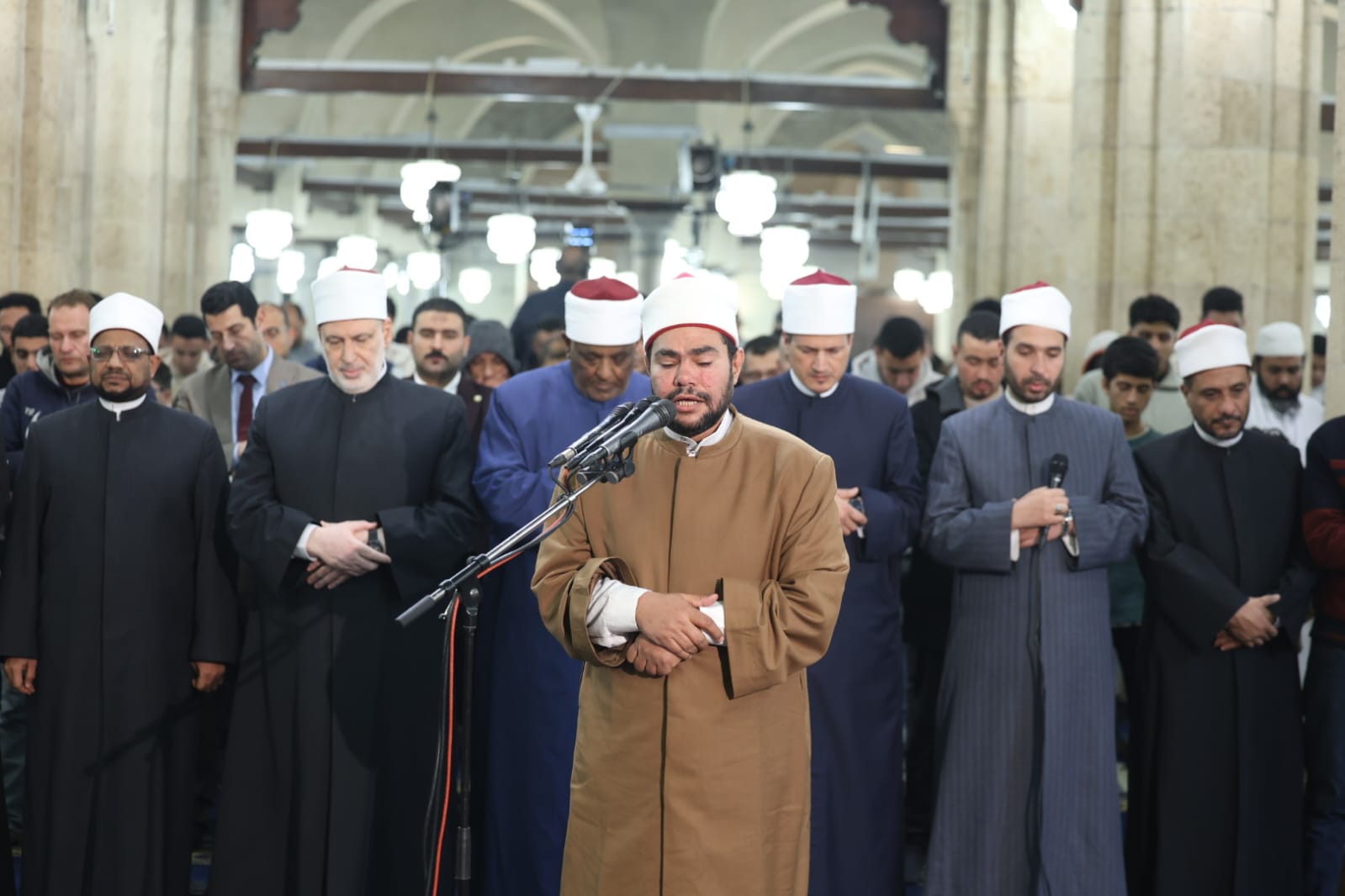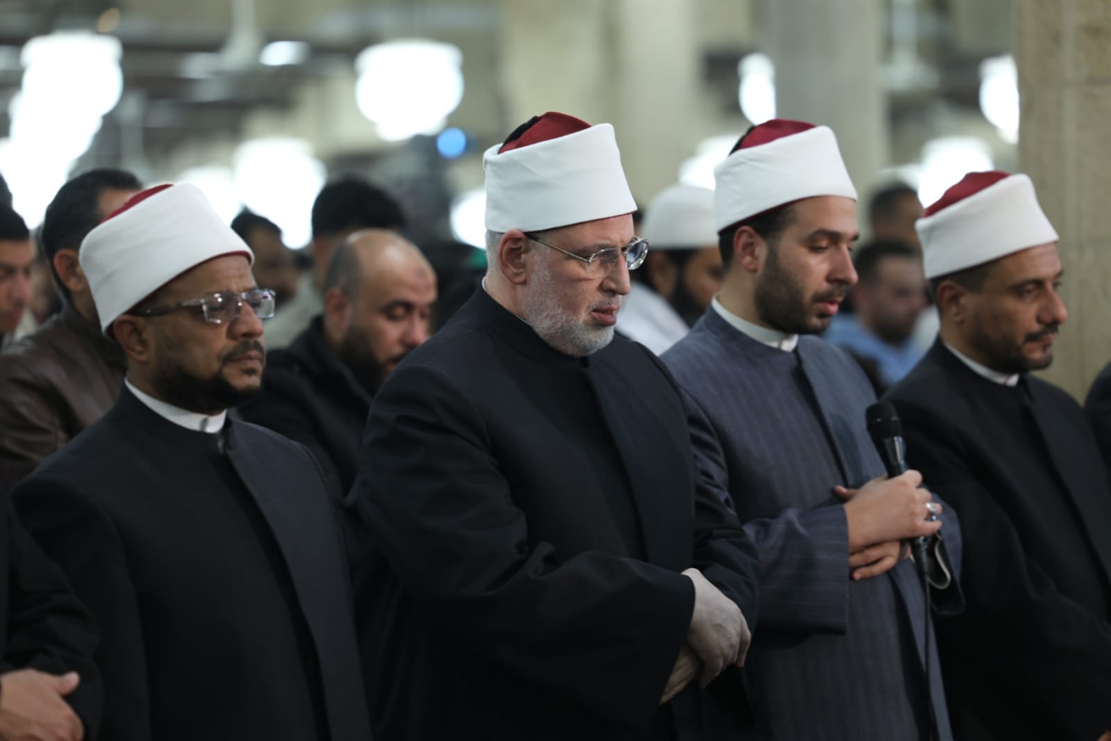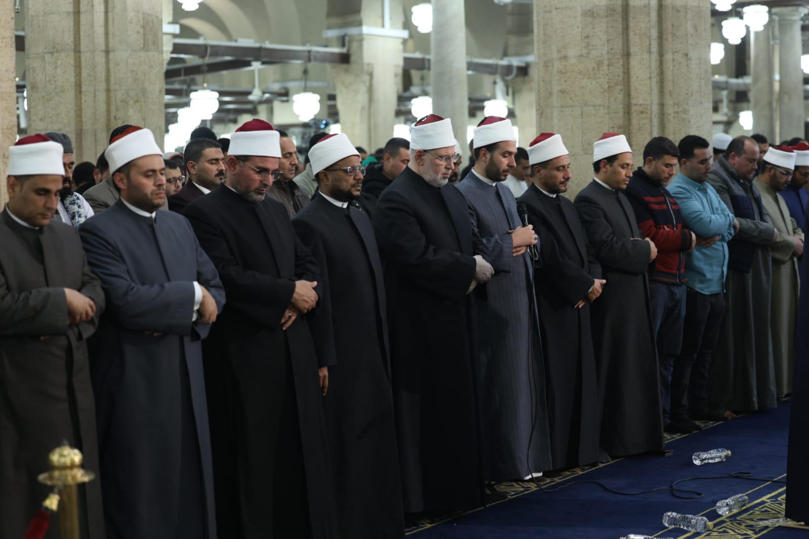 وتقدَّم صفوف المصلين فضيلة أ.د/ محمد الضويني، وكيل الأزهر، وأ.د عباس شومان، أمين عام هيئة كبار العلماء، وأ.د/ محمد الجندي، الأمين العام لمجمع البحوث الإسلامية، والدكتور هاني عودة، مدير الجامع الأزهر، والشيخ حسن عبدالنبي، وكيل لجنة مراجعة المصحف، إلى جانب لفيف من علماء الأزهر الشريف وقياداته، حيث شاركوا جموع المصلين الدعاء والتضرع إلى الله تعالى أن يتقبل صالح الأعمال، وأن يعمَّ الخير والبركة على مصر والأمة الإسلامية.