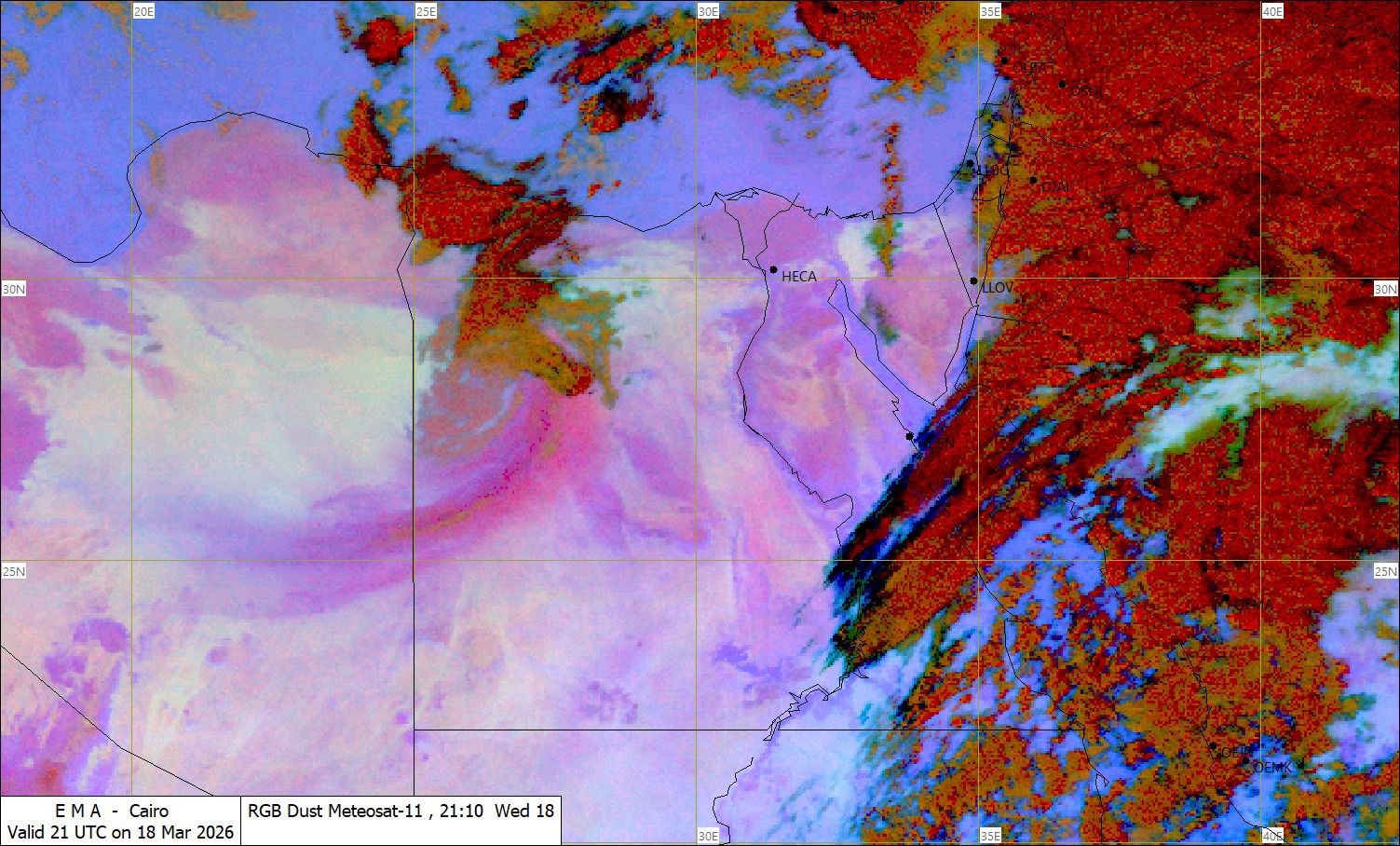 وتقدم المنخفض الجوي السطحي القادم من الحدود الليبية إلى الصحراء الغربية وتنشط معه الرياح وتكون مثيرة للرمال والأتربة على مناطق من الصحراء الغربية ، وتمتد تدريجيًا مع الوقت لتشمل مناطق من شمال ووسط الصعيد، مما يؤدي إلى تدهور مستوى الرؤية الأفقية .