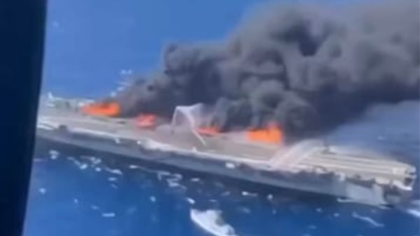تداول نشطاء مواقع التواصل الاجتماعي مقطع فيديو حديث، يكشف لحظة احتراق حاملة الطائرات الأمريكية "يو أس أس جيرالد فورد"، والتي كانت تتمركز قبالة السواحل الإيرانية، والتي رجح البعض أن حاملة الطائرات فورد إصيبت بصاروخ إيراني، لكن القيادة المركزية الأمريكية ذكرت أن حاملة الطائرات جيرالد فورد تعرضت لحريق غير مرتبط بأي عمل قتالي.