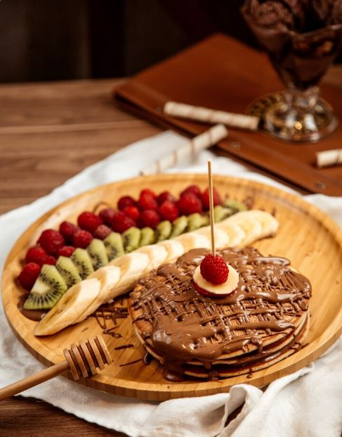 4. تقديم البان كيك، زيّنيه بطبقة من شوكولاتة النوتيلا وأضيفي شرائح الموز عليه للحصول على طبق شهي وأنيق.