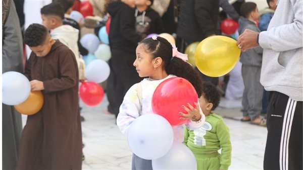 أجواء احتفالية وبلالين تسقط من السماء على المصلين بمسجد مصطفى محمود عقب صلاة العيد