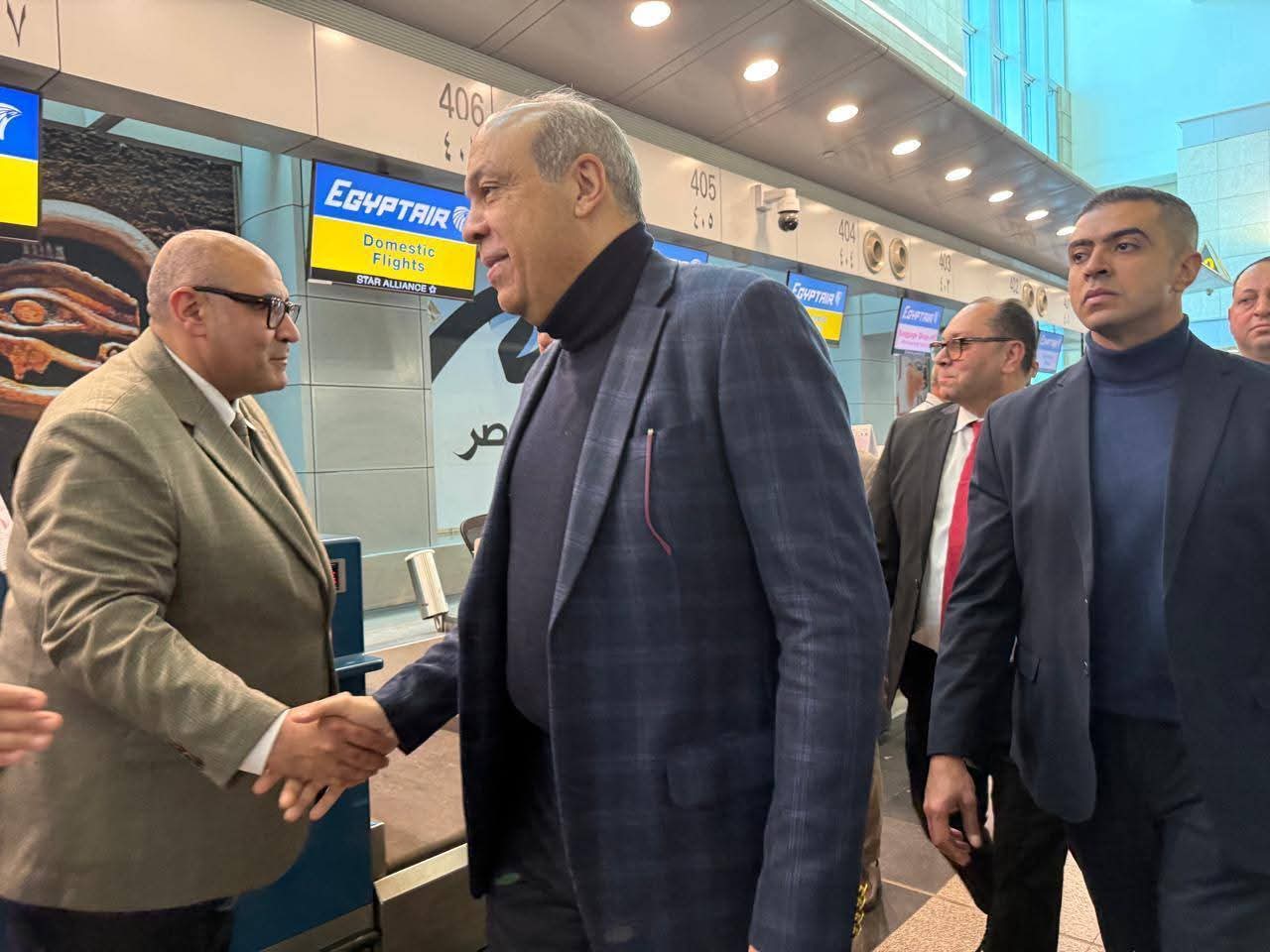 وزير الطيران المدني يقوم بجولة تفقدية بمطار القاهرة الدولي لمتابعة انتظام حركة التشغيل