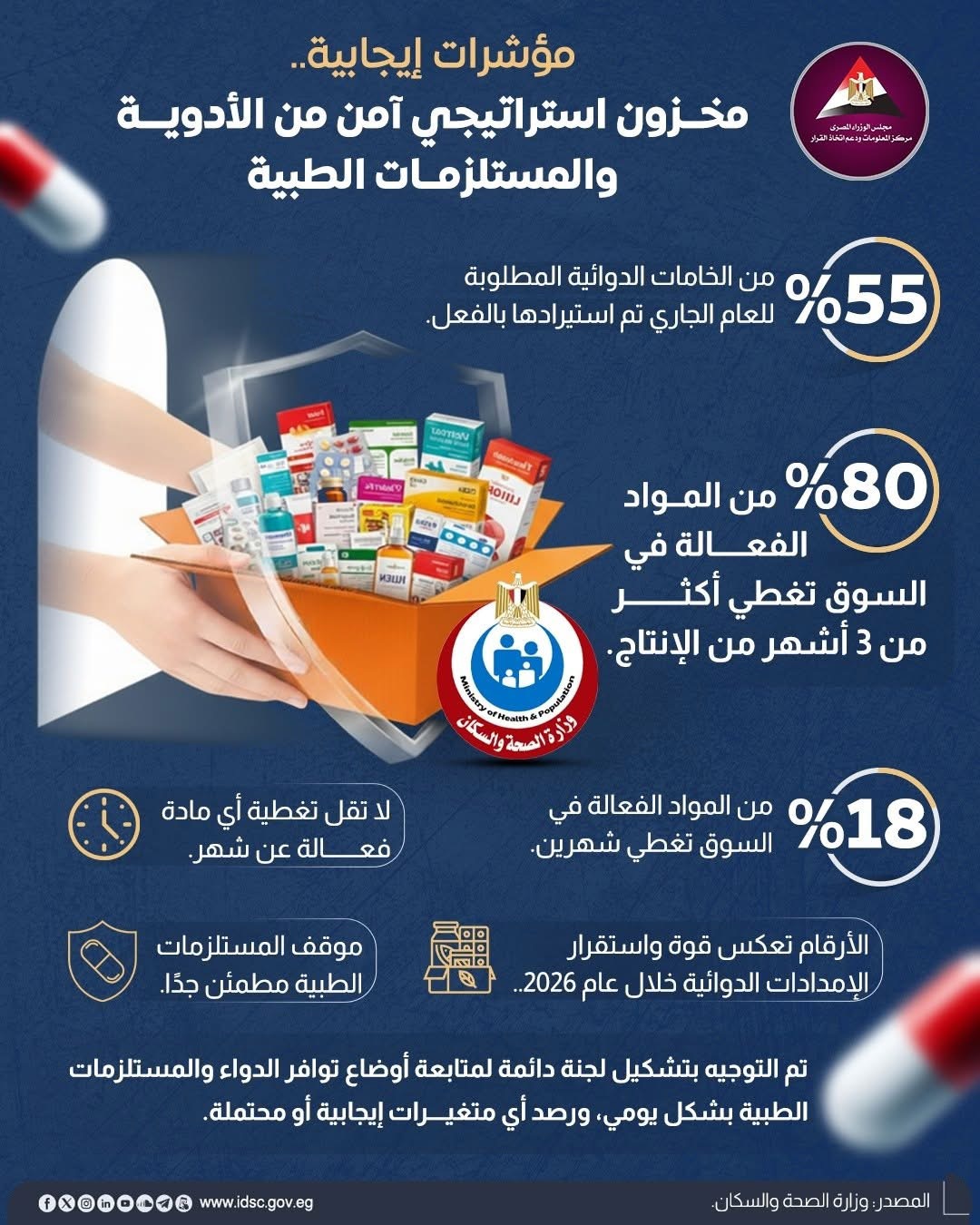 عاجل.. الحكومة تطمئن المواطنين: مخزون الدواء الاستراتيجي آمن وإيجابي