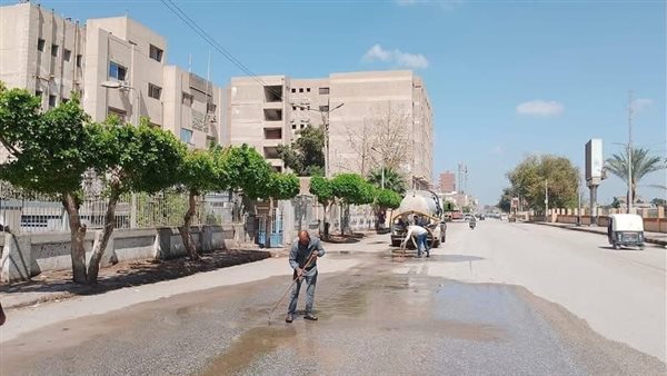إزالة تجمعات مياه الأمطار بشوارع المنيا لتيسير الحركة المرورية