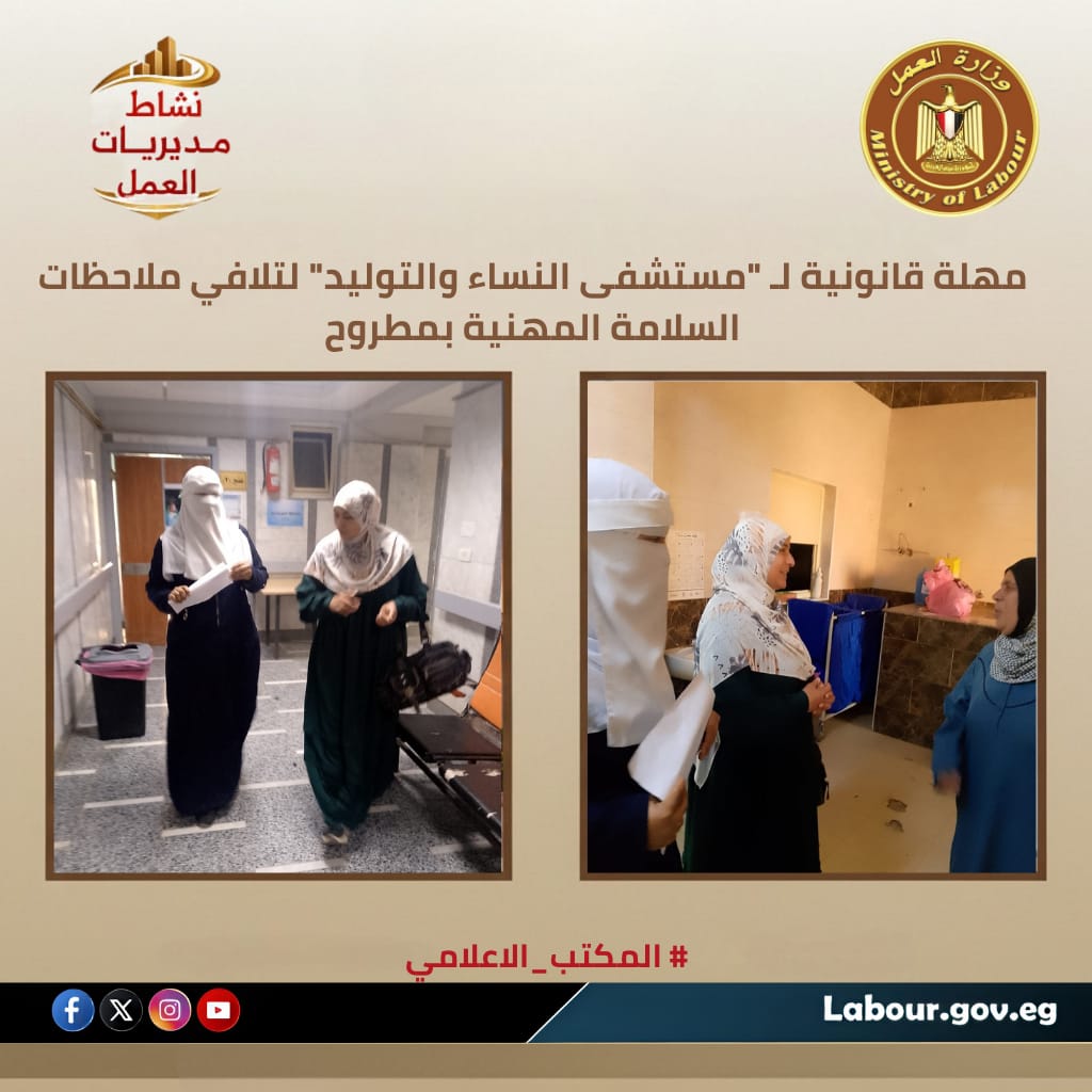 6-مهلة قانونية لـ "مستشفى النساء والتوليد" لتلافي ملاحظات السلامة المهنية بمطروح