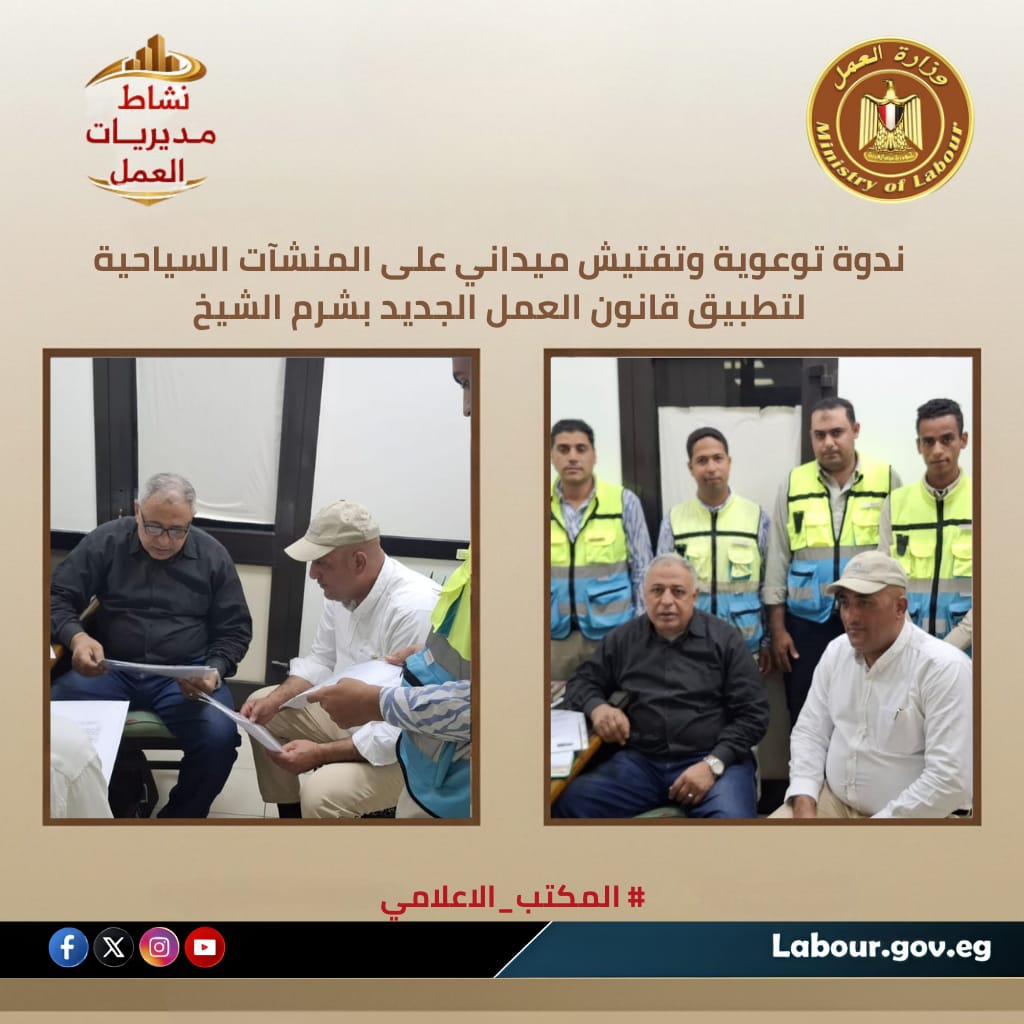 9-ندوة توعوية وتفتيش ميداني على المنشآت السياحية لتطبيق قانون العمل الجديد بشرم الشيخ