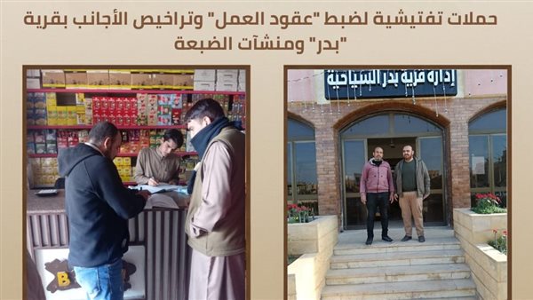 10- حملات تفتيشية لمتابعة "عقود العمل" وتراخيص الأجانب بقرية "بدر" ومنشآت الضبعة