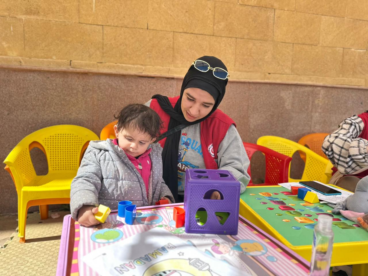 وانتشرت الفرق على معبر رفح من الجانب المصري؛ لتقديم الخدمات الإغاثية والتي شملت الدعم النفسي للأطفال، خدمات إعادة الروابط العائلية.