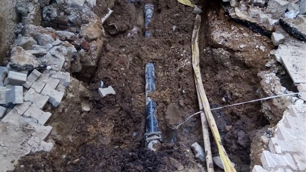 عودة ضخ المياه بعد إصلاح كسر خط المياه بمنطقة عمر أفندي بوسط مدينة قنا