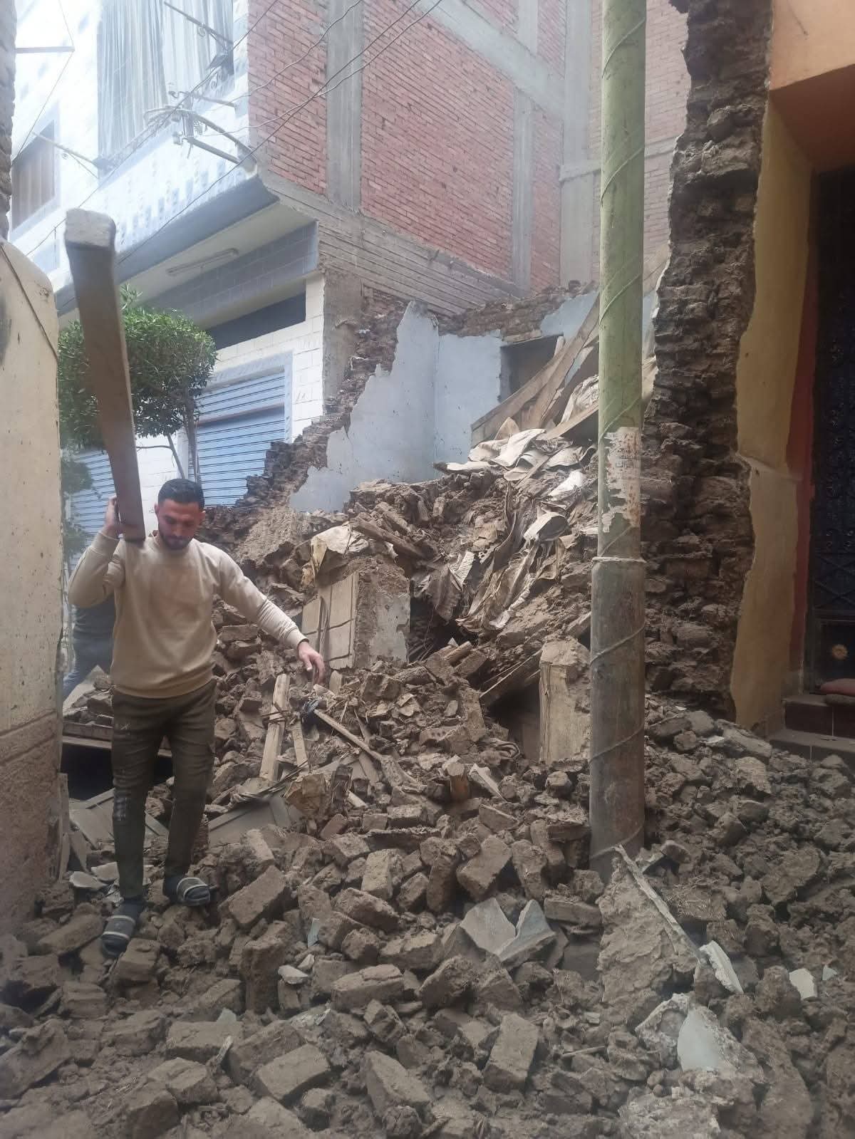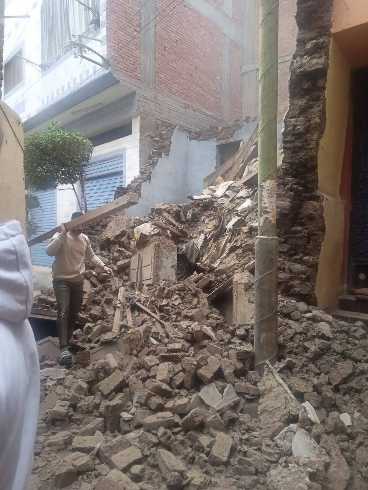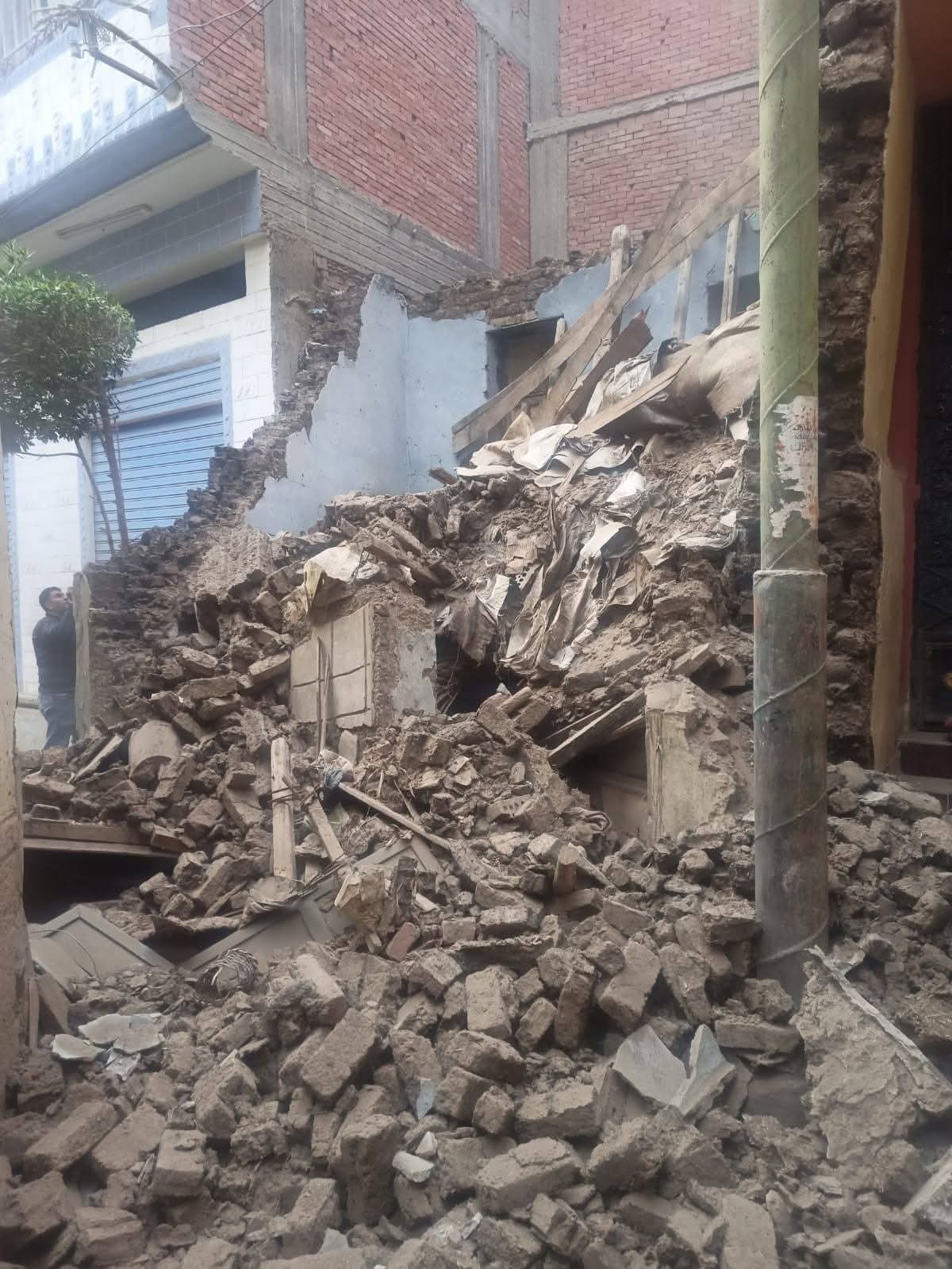 بالصور.. تصدع منزل قديم في طوخ بالقليوبية وإجراءات عاجلة لحماية المارة