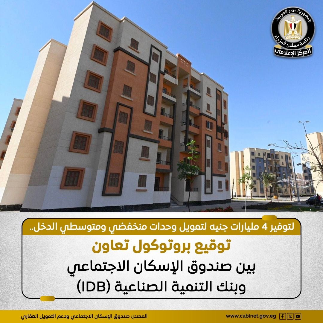 وقع صندوق الإسكان الاجتماعي ودعم التمويل العقاري بروتوكول تعاون مع بنك التنمية الصناعية (IDB)، في خطوة تهدف إلى تعزيز التعاون مع القطاع المصرفي لتوفير حلول تمويلية ميسرة للمواطنين منخفضي ومتوسطي الدخل.
