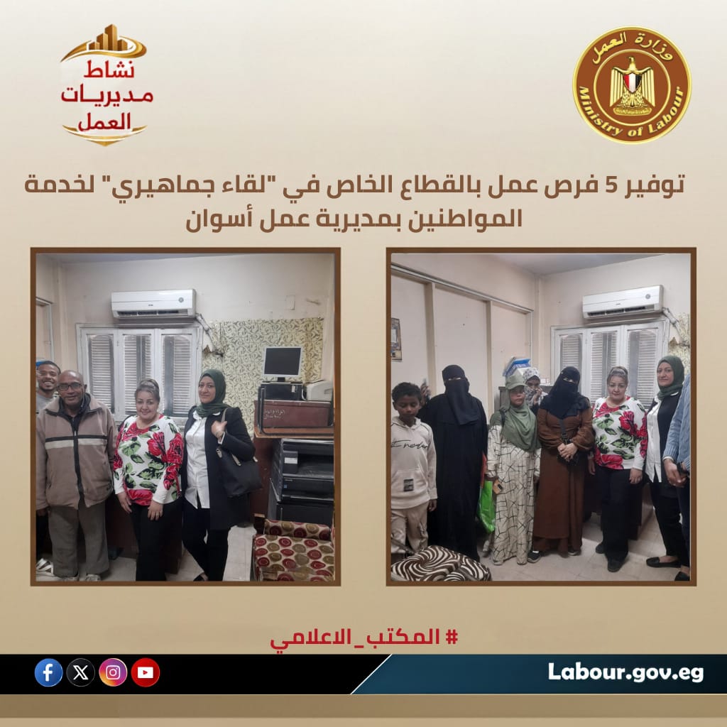 3-توفير 5 فرص عمل بالقطاع الخاص خلال "لقاء جماهيري" لخدمة المواطنين بمديرية عمل أسوان
