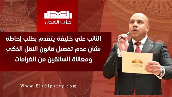 تقدّم النائب علي خليفة بطلب إحاطة إلى هشام بدوي، موجّه إلى وزير النقل، بشأن عدم تفعيل قانون النقل الذكي رقم 86 لسنة 2018، وما ترتب على ذلك من أضرار لمستخدمي ومشغلي تطبيقات النقل الذكي.