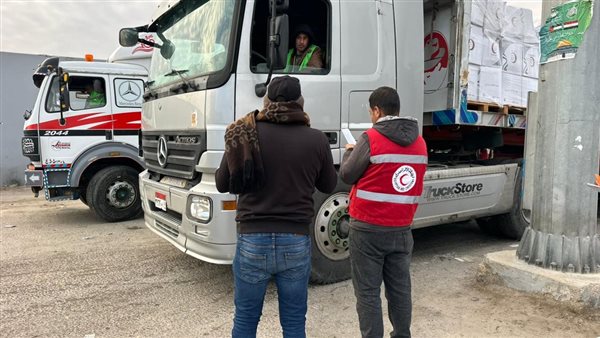 الهلال الأحمر المصري يمد غزة بسلال غذائية ومستلزمات شتوية عبر قافلة «زاد العزة» الـ163