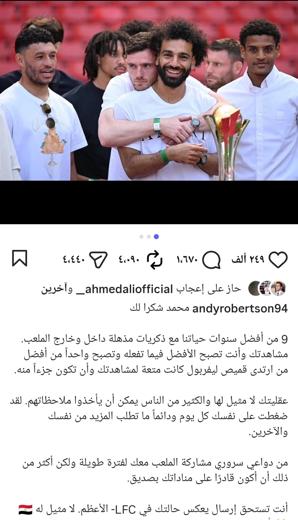 وجه نجم ليفربول السابق الدولي روبرتسون رساله خاصة الى نجم الريدز الدولي المصري محمد صلاح بعد إعلان رحيله عن ليفربول نهاية الموسم الحالي.