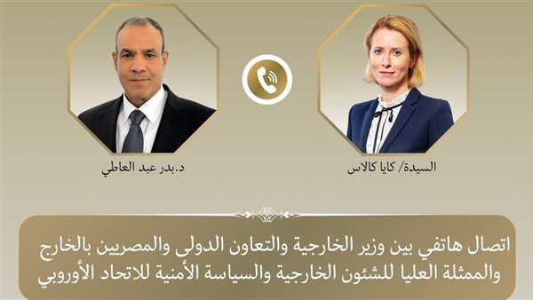 تلقى د. بدر عبد العاطي وزير الخارجية والتعاون الدولى والمصريين بالخارج اتصالاً هاتفياً من السيدة "كايا كالاس" الممثلة العليا للشئون الخارجية والسياسة الأمنية للاتحاد الأوروبي, حيث تناول الاتصال سبل خفض التصعيد العسكرى فى المنطقة وتطورات القضية الفلسطينية.