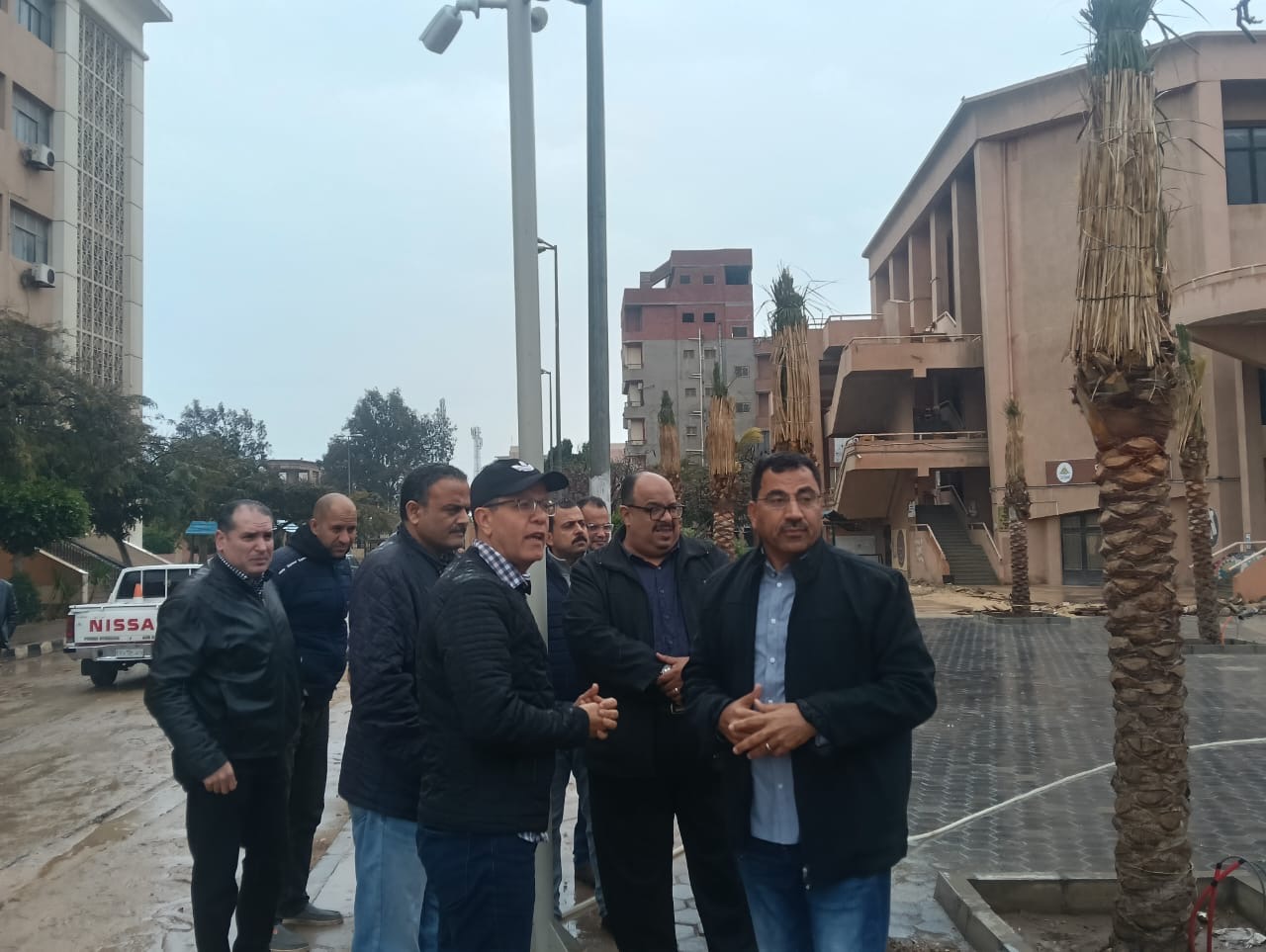رئيس جامعة بنها يتفقد المنشآت الجامعية وإزالة آثار مياه الأمطار