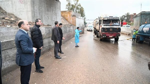 وتابع المحافظ على أرض الواقع أعمال رفع تجمعات المياه وتصريفها، موجهًا بتكثيف الدفع بالمعدات وفرق الطوارئ، خاصة بالمناطق الحيوية والأنفاق، لضمان عدم تأثر الحركة المرورية وسرعة التعامل مع أي تجمعات، مع التدخل الفوري في المواقع التي تشهد كثافات أو تراكمات للمياه.