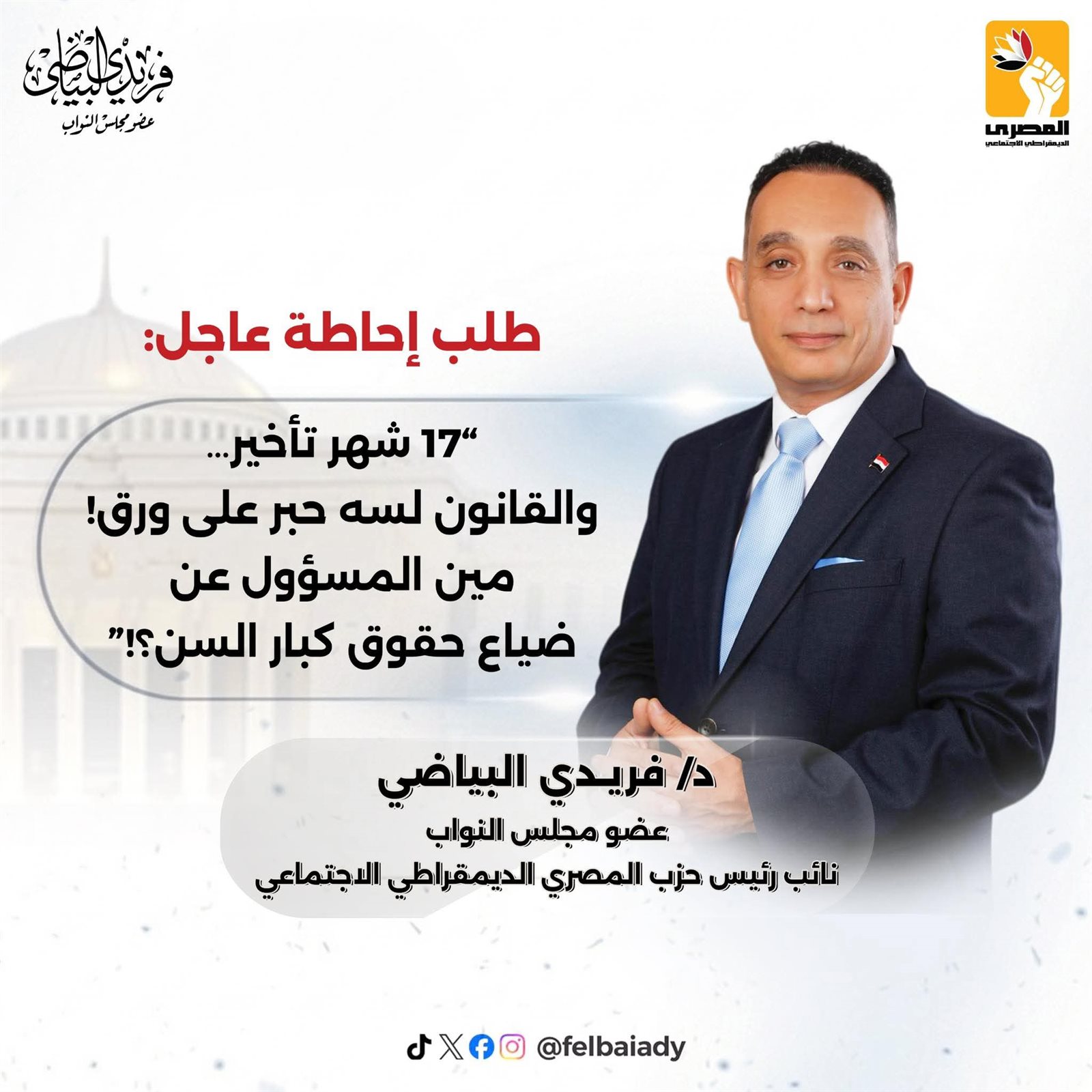 وطالب البياضي بسرعة إصدار اللائحة التنفيذية للقانون بشكل فوري، إلى جانب فتح تحقيق عاجل ومحاسبة كل من تسبب في تعطيل تطبيقه، مؤكدًا أن كبار السن لا ينتظرون وعودًا، بل ينتظرون تنفيذ حقوقهم واحترام الدستور وتطبيق القانون.