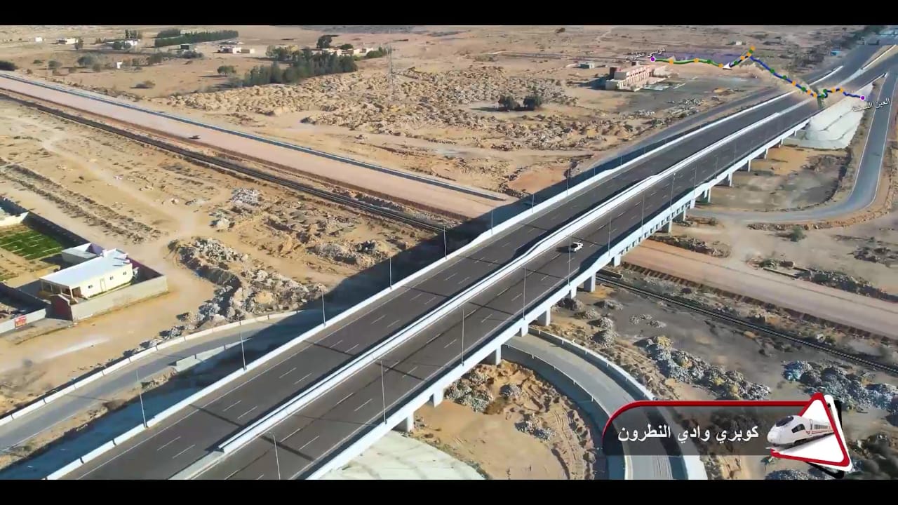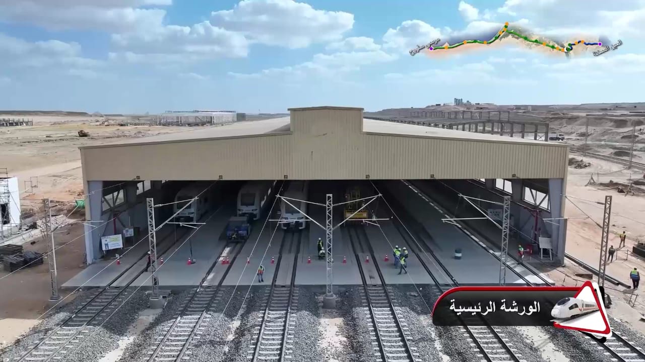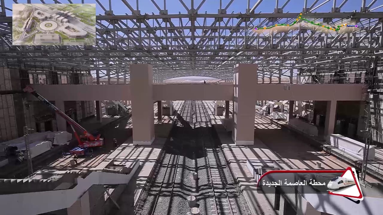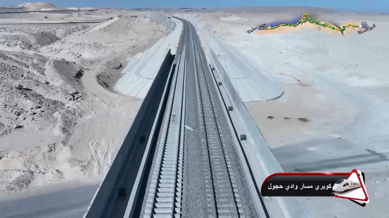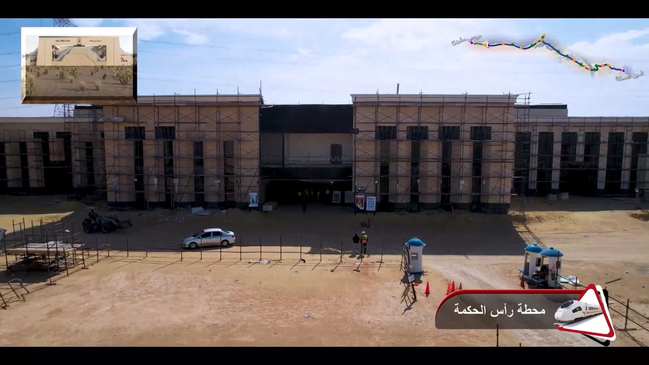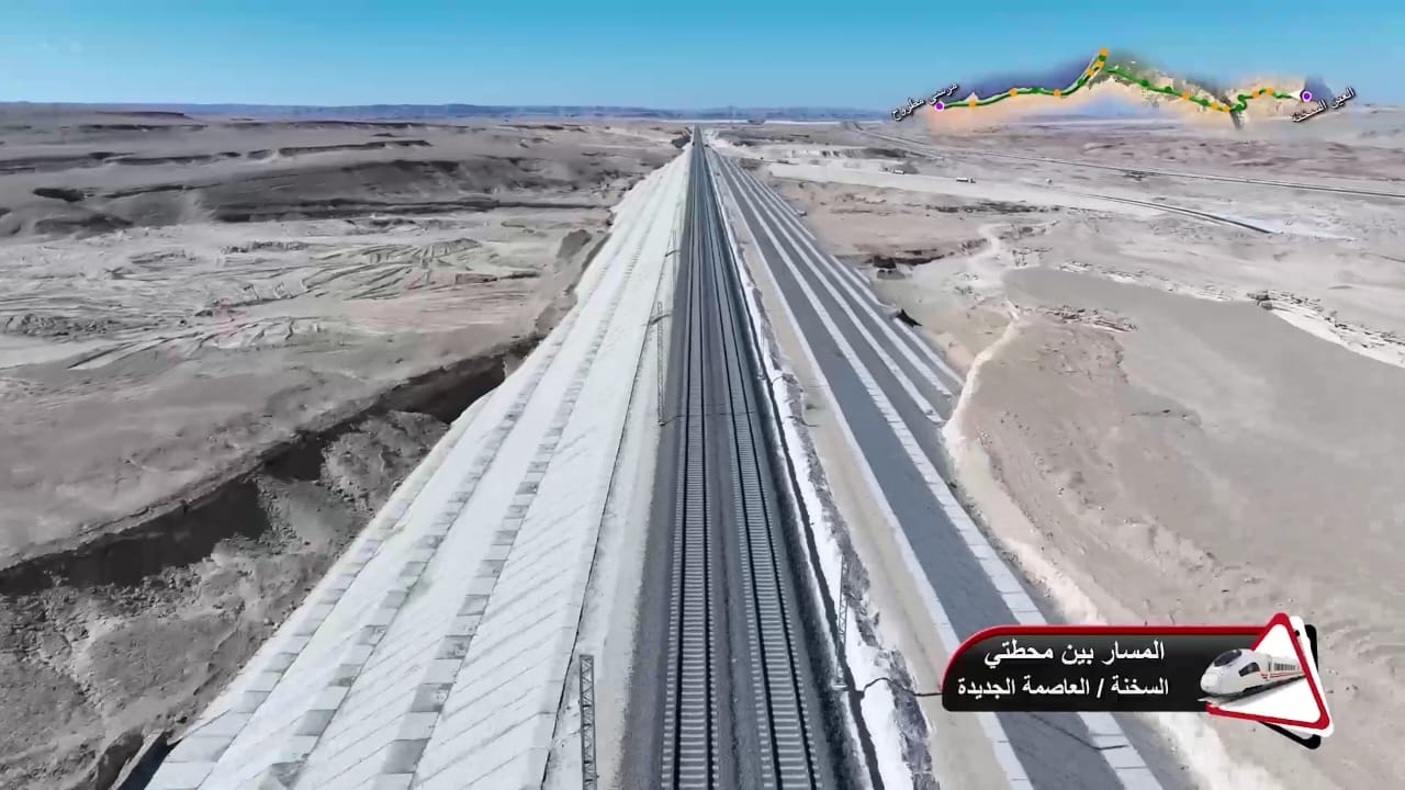 1. يتقدم العمل في أعمال تركيب القضبان وتشطيبات المحطات بمشروع الخط الأول من شبكة القطار الكهربائي السريع (السخنة/العلمين/مطروح)