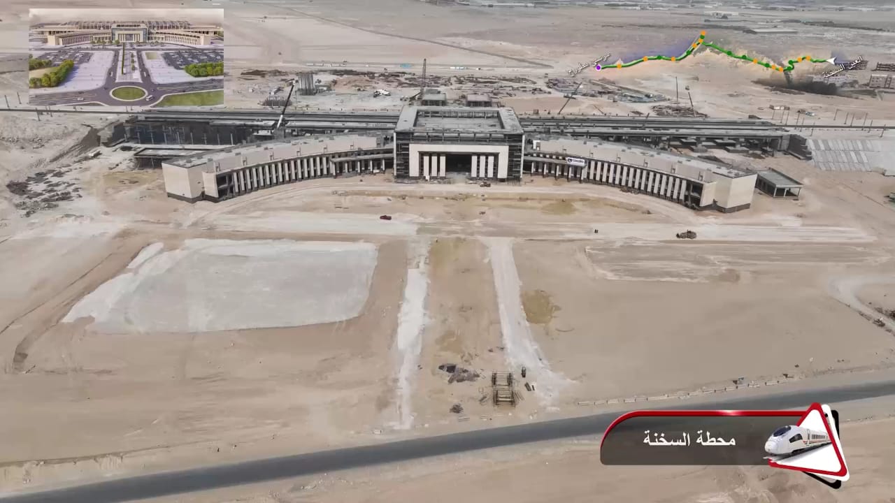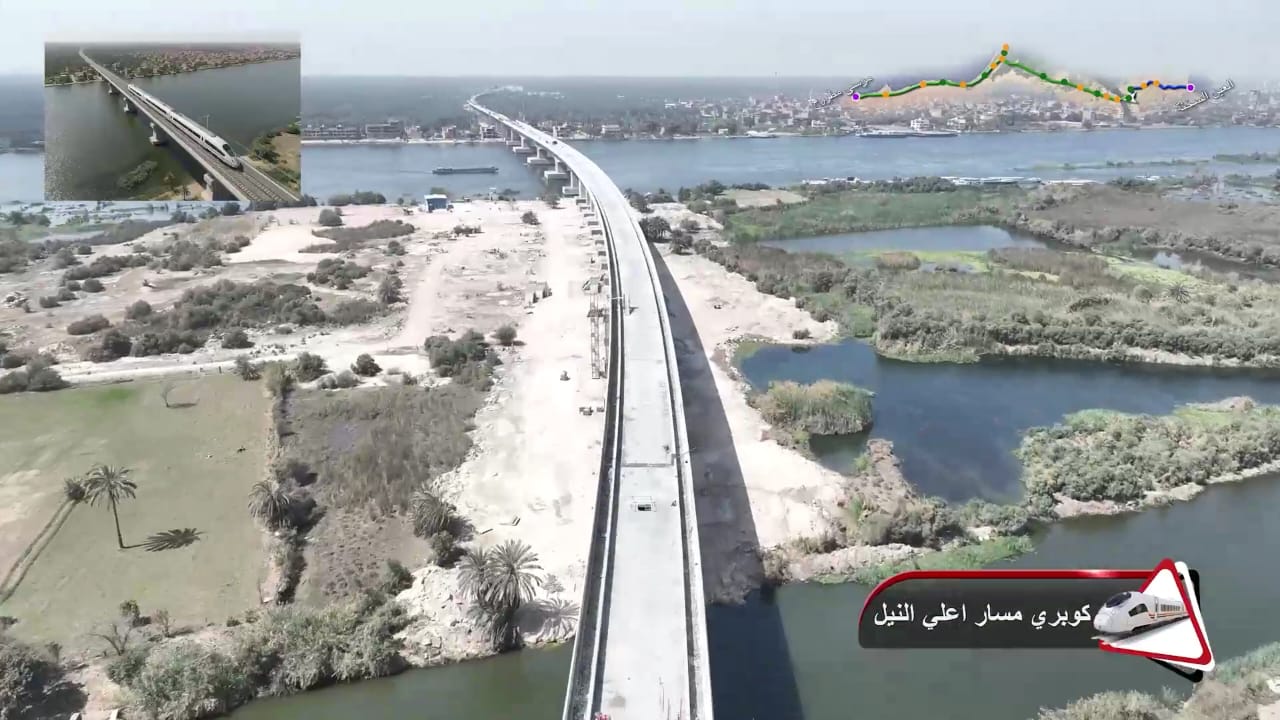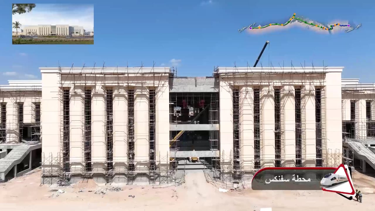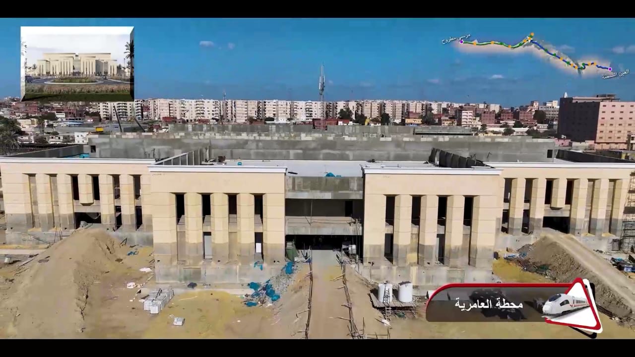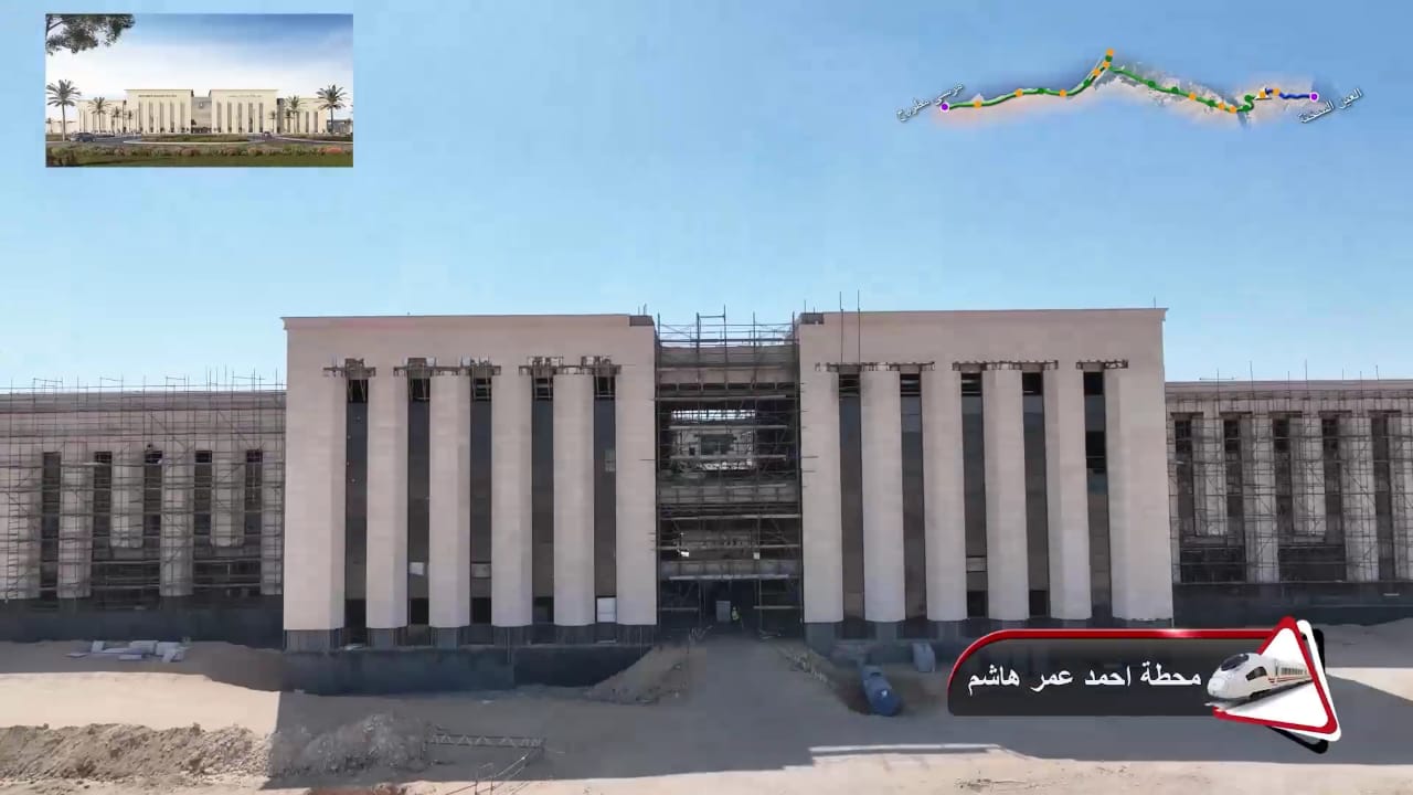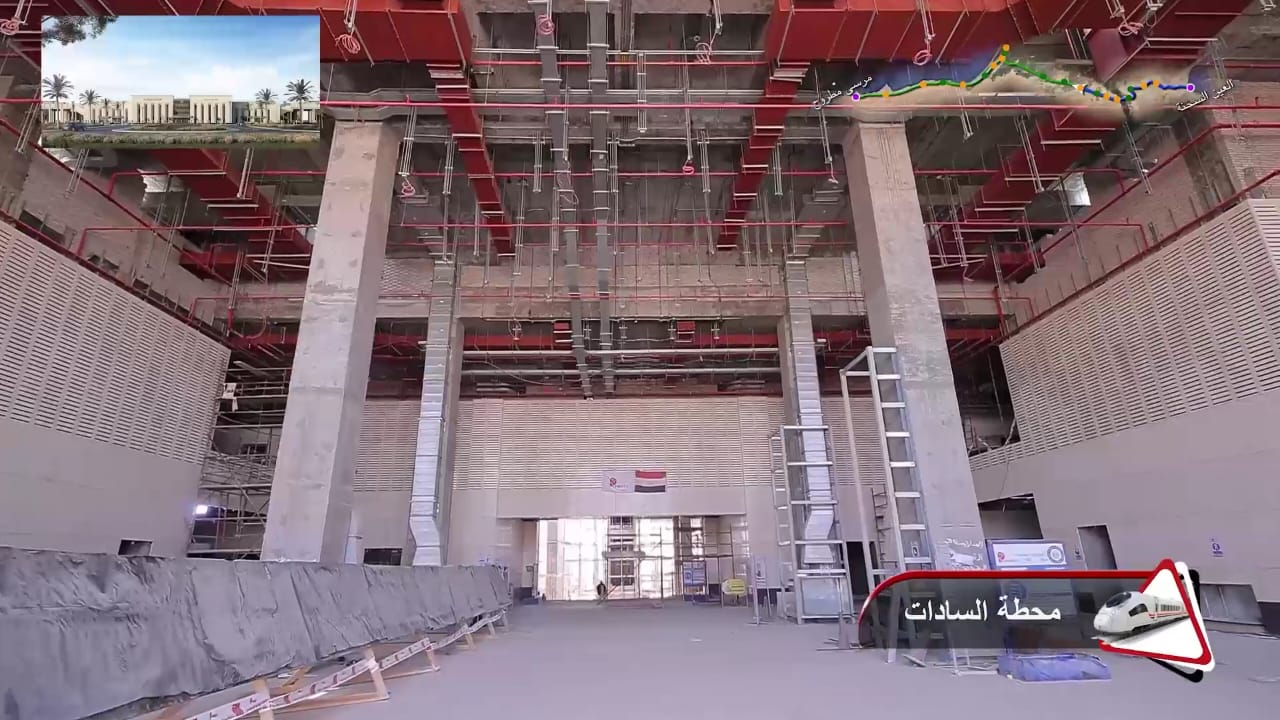 1. يتقدم العمل في أعمال تركيب القضبان وتشطيبات المحطات بمشروع الخط الأول من شبكة القطار الكهربائي السريع (السخنة/العلمين/مطروح)