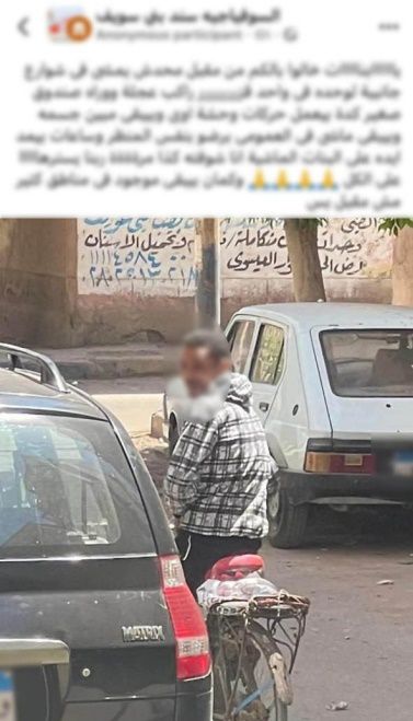 بالفحص، تبين عدم وجود ثمة بلاغات فى هذا الشأن، وأمكن تحديد وضبط الشخص الظاهر بالمنشور (عاطل "له معلومات جنائية" - مقيم بدائرة مركز شرطة بنى سويف)، وبحوزته الدراجة الهوائية الظاهرة بالمنشور، وبمواجهته اعترف باعتياده التحرش بالفتيات دون تمييز بشوارع مدينة بنى سويف على النحو المشار إليه.