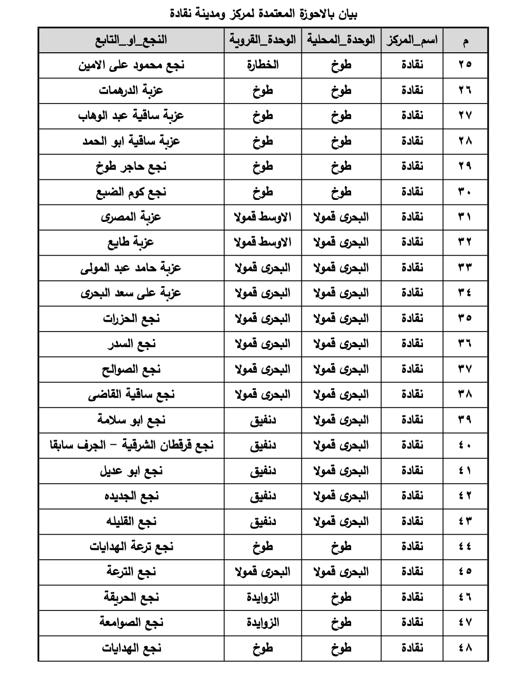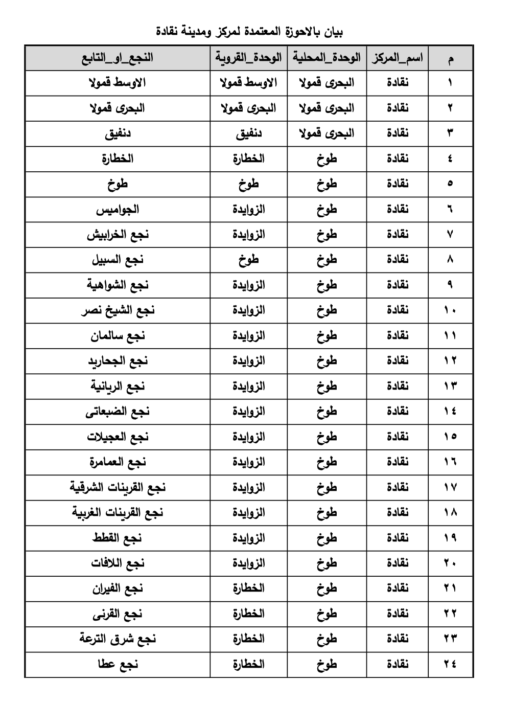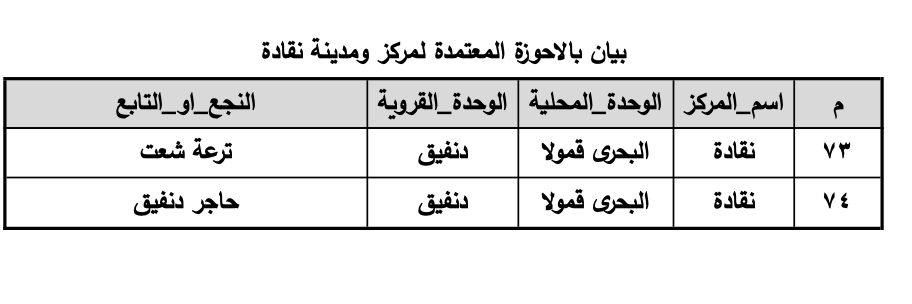 خريطة القرى والنجوع المعتمدة بمركز نقادة