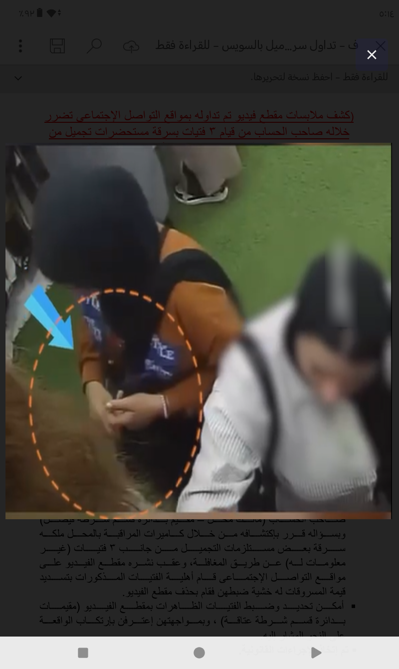 بالفحص تبين عدم ورود بلاغات فى هذا الشأن ، وأمكن تحديد صاحب الحساب (مالك محل – مقيم بدائرة قسم شرطة فيصل) وبسؤاله قرر باكتشافه من خلال كاميرات المراقبة بالمحل ملكه سرقة بعض مستلزمات التجميل من جانب 3 فتيات (غير معلومات له) عن طريق المغافلة، وعقب نشره مقطع الفيديو على مواقع التواصل الاجتماعى قام أهلية الفتيات المذكورات بتسديد قيمة المسروقات له خشية ضبطهن فقام بحذف مقطع الفيديو.