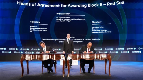 في إطار فعاليات اليوم الأول من مؤتمر ومعرض مصر الدولي للطاقة “إيجبس 2026”، شهد المهندس كريم بدوي، وزير البترول والثروة المعدنية، توقيع مذكرة المبادئ الأساسية لاتفاقية إسناد القطاع (6) بالبحر الأحمر، بين شركة جنوب الوادي المصرية القابضة للبترول وشركة “بي بي إكسبلوريشن (دلتا) ليمتد”.
