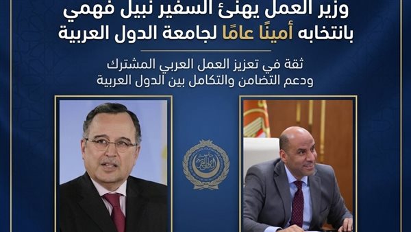 واختتم وزير العمل تهنئته متمنيًا للسفير نبيل فهمي دوام النجاح في أداء هذه المسؤولية الكبيرة، بما يعزز من دور جامعة الدول العربية في خدمة القضايا العربية المشتركة.