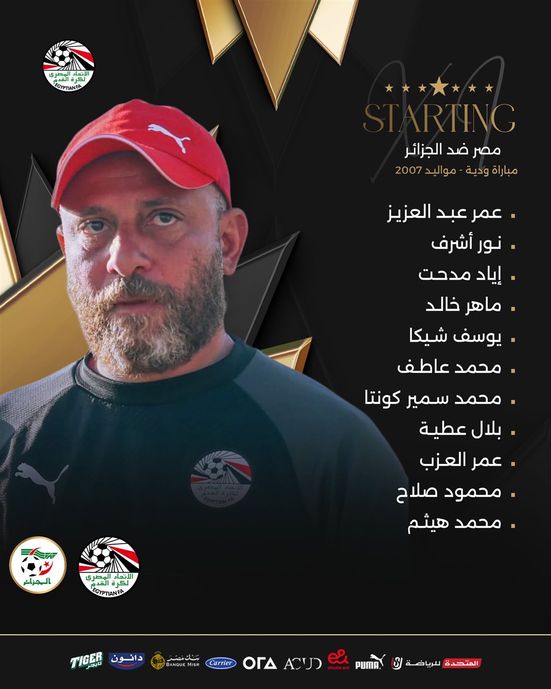أعلن وائل رياض المدير الفني لـ منتخب الشباب مواليد 2007، تشكيل فريقه لمواجهة نظيره منتخب الجزائر، في ثاني اللقاءات الودية بين الفريقين خلال أربعة أيام، ضمن استعدادات المنتخبين الشقيقين لتصفيات شمال أفريقيا المؤهلة لبطولة أمم أفريقيا تحت 20 سنة.