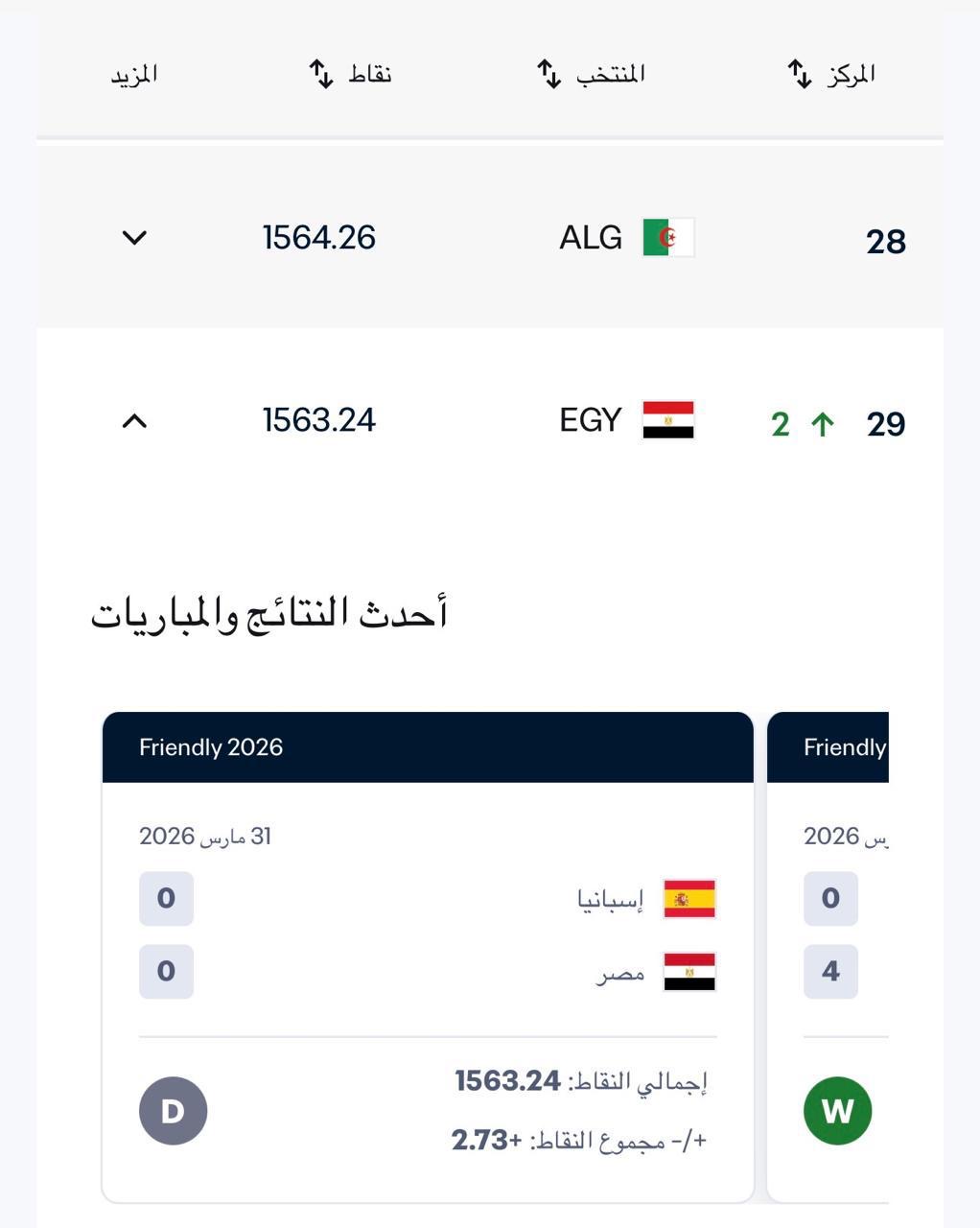 منتخب مصر يحتفظ بالمركز الـ 29 عالميا بعد تعادله مع الماتادور الإسباني في عقر داره