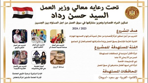 وتؤكد وزارة العمل أن تنفيذ هذا المشروع يأتي في إطار اهتمام الدولة بتمكين المرأة اقتصاديًا واجتماعيًا وصحيًا، بما يسهم في تحقيق العدالة الاجتماعية وبناء مجتمع أكثر استدامة، مشيرة إلى استمرار تنفيذ هذه المبادرات سنويًا دعمًا لرؤية الدولة المصرية في تمكين المرأة وتعزيز دورها في التنمية الشاملة.