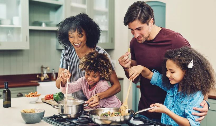 4. يمكن للطهي مع العائلة أن يكون نشاطاً ممتعاً ومفيداً، حيث يمكنك توزيع المهام والسماح للأطفال بخوض تجربة إعداد أطباق جديدة.