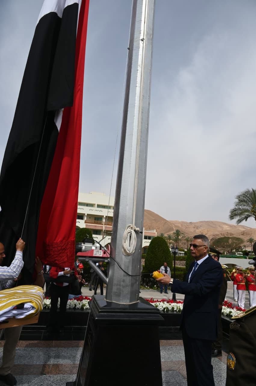 محافظ جنوب سيناء يرفع العلم بساحة طابا احتفالًا بالعيد القومي الـ37 للمحافظة