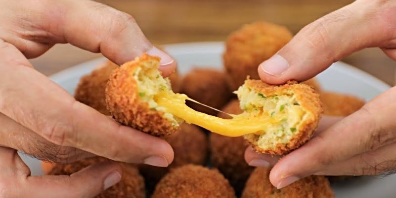 شكليها كرات متوسطة الحجم، اضغطي عليها بالإبهام وأضيفي جبن رومي وشيدر مبشورًا.