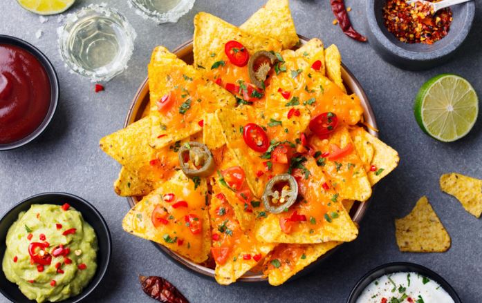 قدمي مزيج الفاصوليا مع التورتيلا ورشي الزبادي والكزبرة زيني بشرائح الليمون ورشة بابريكا مدخنة حسب الرغبة .