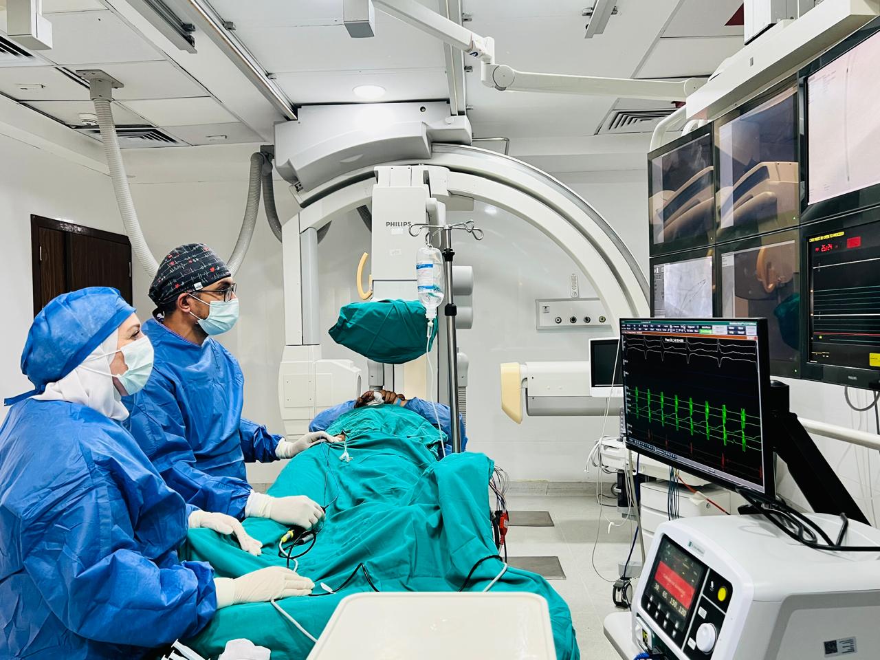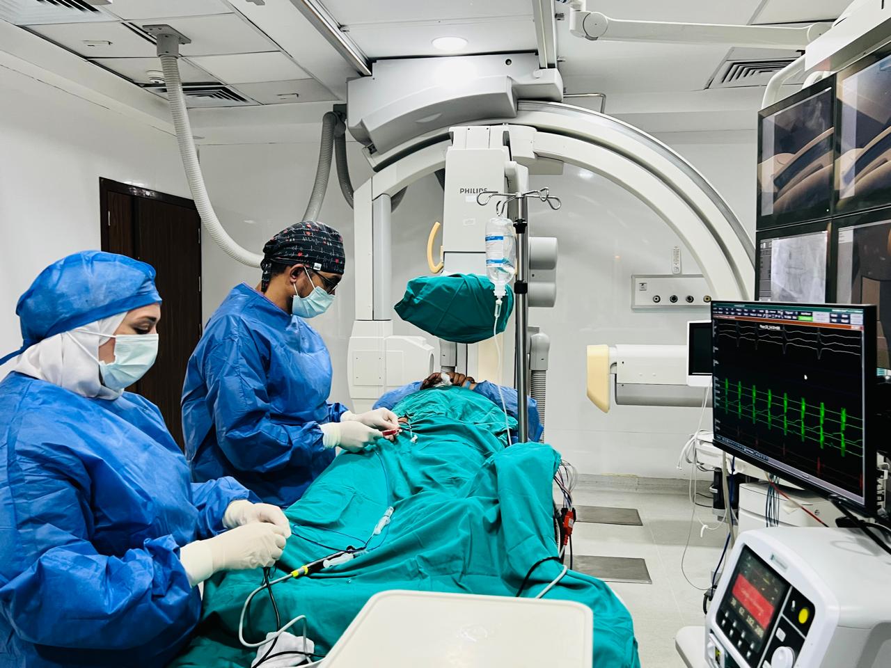 وأضاف أن المستشفى شهدت تنفيذ عدد من التدخلات الطبية المتقدمة والنادرة، من بينها إجراء أول حالتين لزراعة الصمام الرئوي للأطفال، و79 عملية لعلاج الانسداد المزمن للشرايين التاجية بتقنية (CTO)، و50 عملية تغيير الصمام الأورطي بالقسطرة (TAVI)، و22 عملية للأوعية الدموية بتقنيات (EVAR & TEVAR)، و14 عملية باستخدام تقنية (ROTAPLATOR)، و53 عملية باستخدام تقنية التصوير الداخلي للشريان (IVUS).
