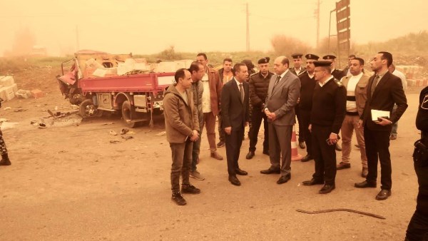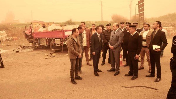 موقع حادث التصادم المروع الذي وقع على طريق "كفر داود– السادات"