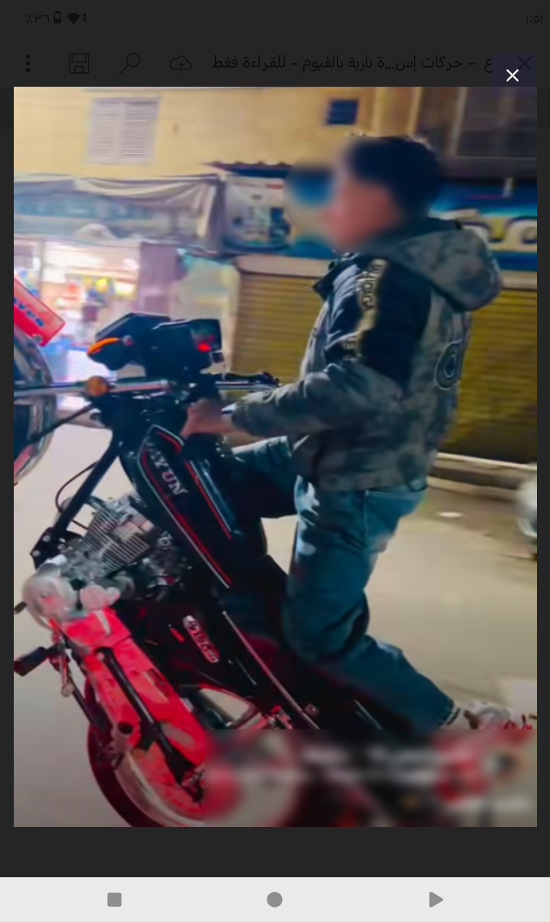 تم التحفظ على الدراجة النارية.. واتخاذ الإجراءات القانونية.